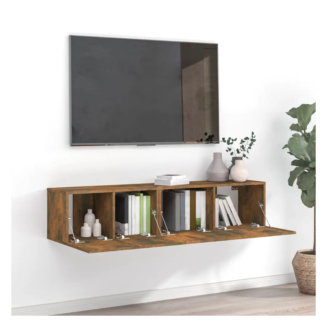 Cet ensemble de meubles TV est un supplément décoratif ainsi que pratique à votre décoration. Matériau robuste : le bois d'ingénierie est d'une qualité exceptionnelle avec une surface lisse et présente également résistance, stabilité et résistance à l'humidité.Rangement spacieux : l'ensemble de meubles TV suspendus offre un grand espace de rangement pour stocker vos télécommandes, magazines, DVD ou autres objets.Style moderne : cet ensemble de meuble Hifi ajoute un style moderne à votre intérieur existant ! Le design moderne présente des lignes épurées, des looks minimalistes et de la lumière naturelle dans le cadre du style de design d'intérieur. Remarque :Les vis et les chevilles pour l'intérieur du mur ne sont pas incluses. Recherchez et utilisez des vis et des chevilles adaptées à vos murs. Si vous n'êtes pas sûr, demandez conseil à un professionnel. Lisez et suivez attentivement chaque étape des instructions.Chaque produit est livré avec un manuel de montage dans la boîte pour un montage facile.