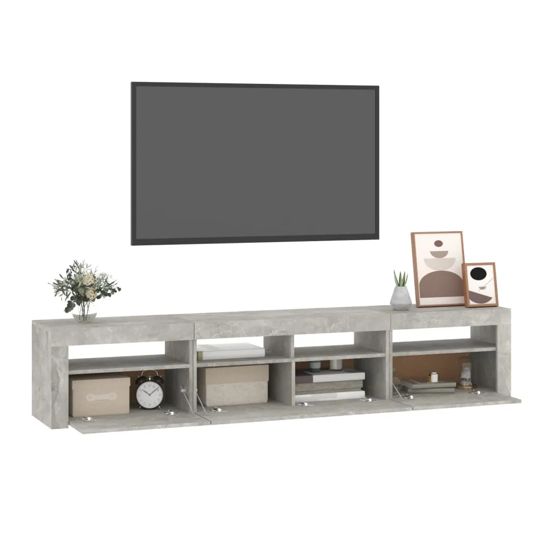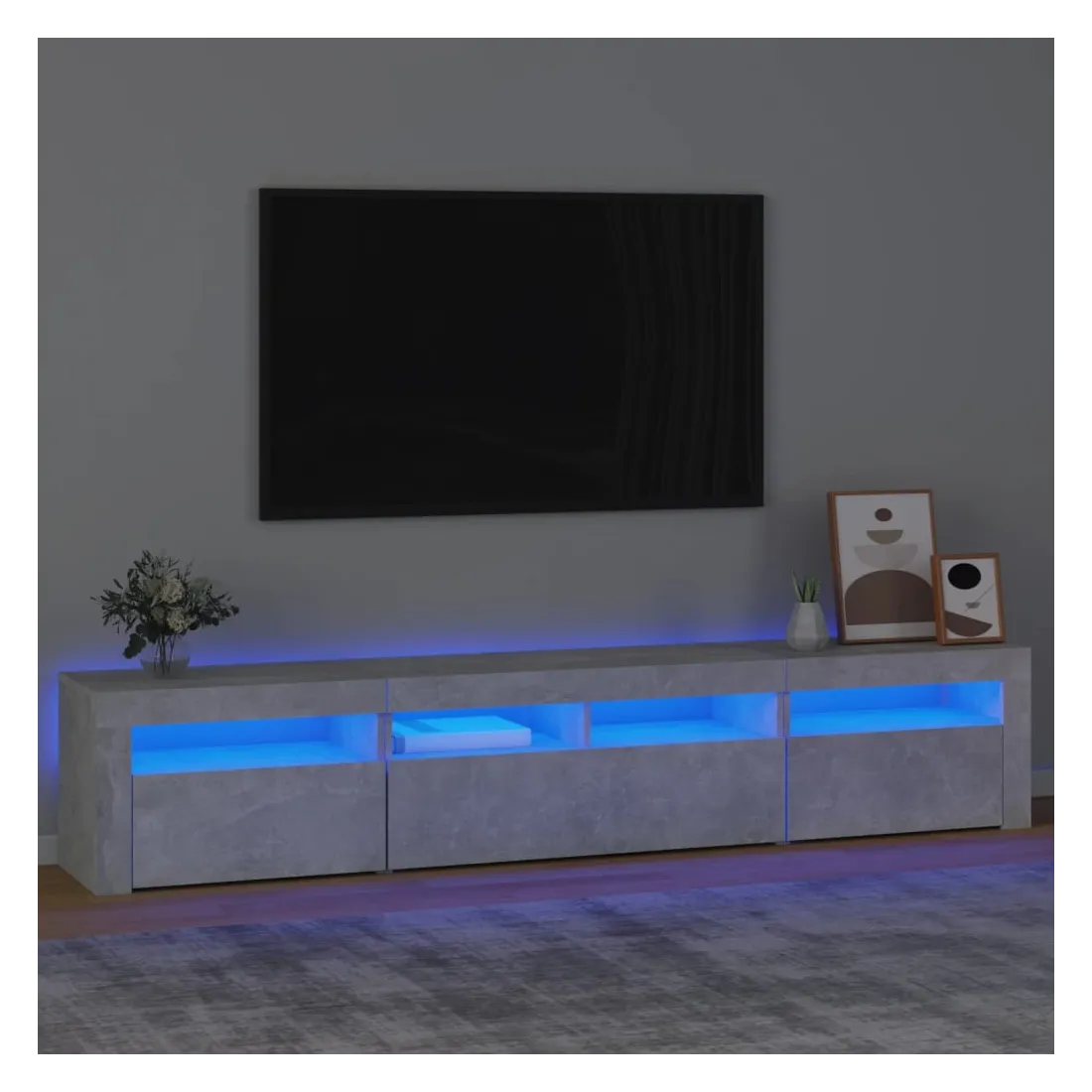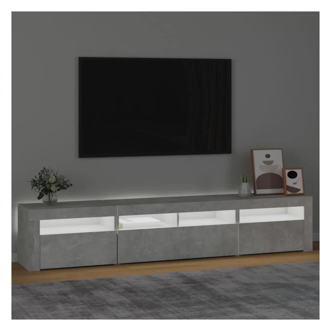 Meuble TV avec lumières LED Gris béton 210x35x40 cm