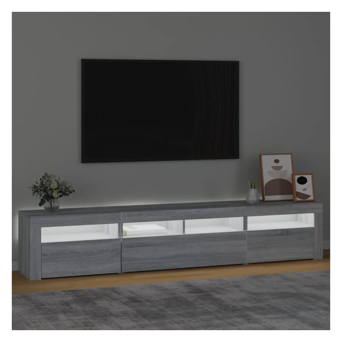 Meuble TV avec lumières LED Sonoma gris 210x35x40 cm
