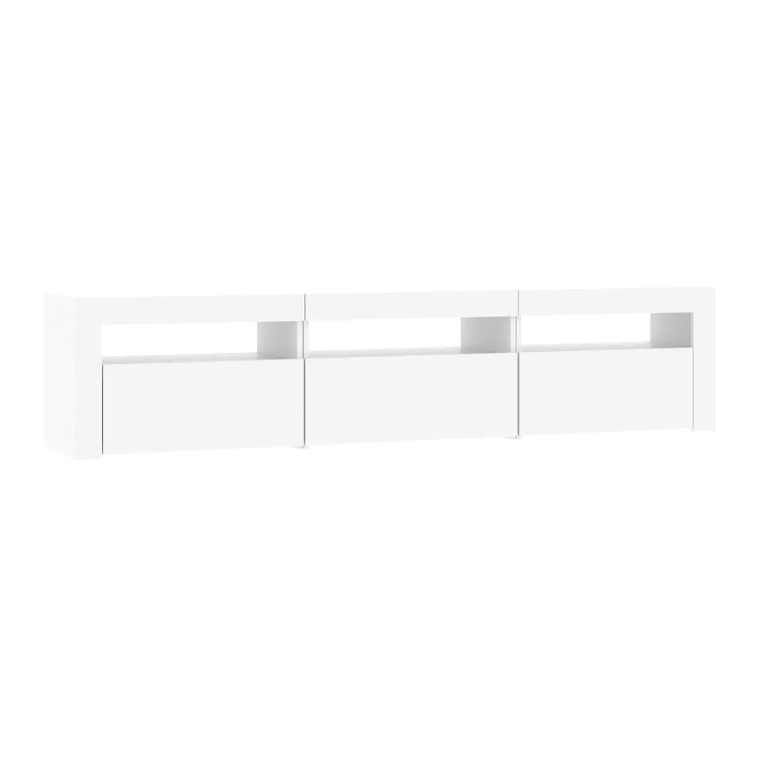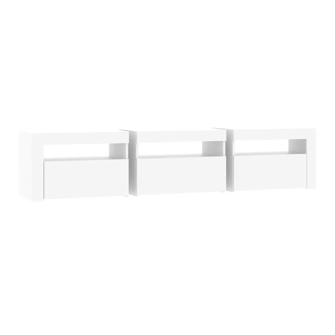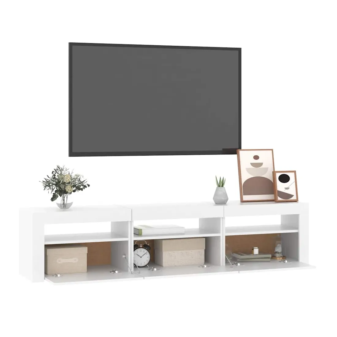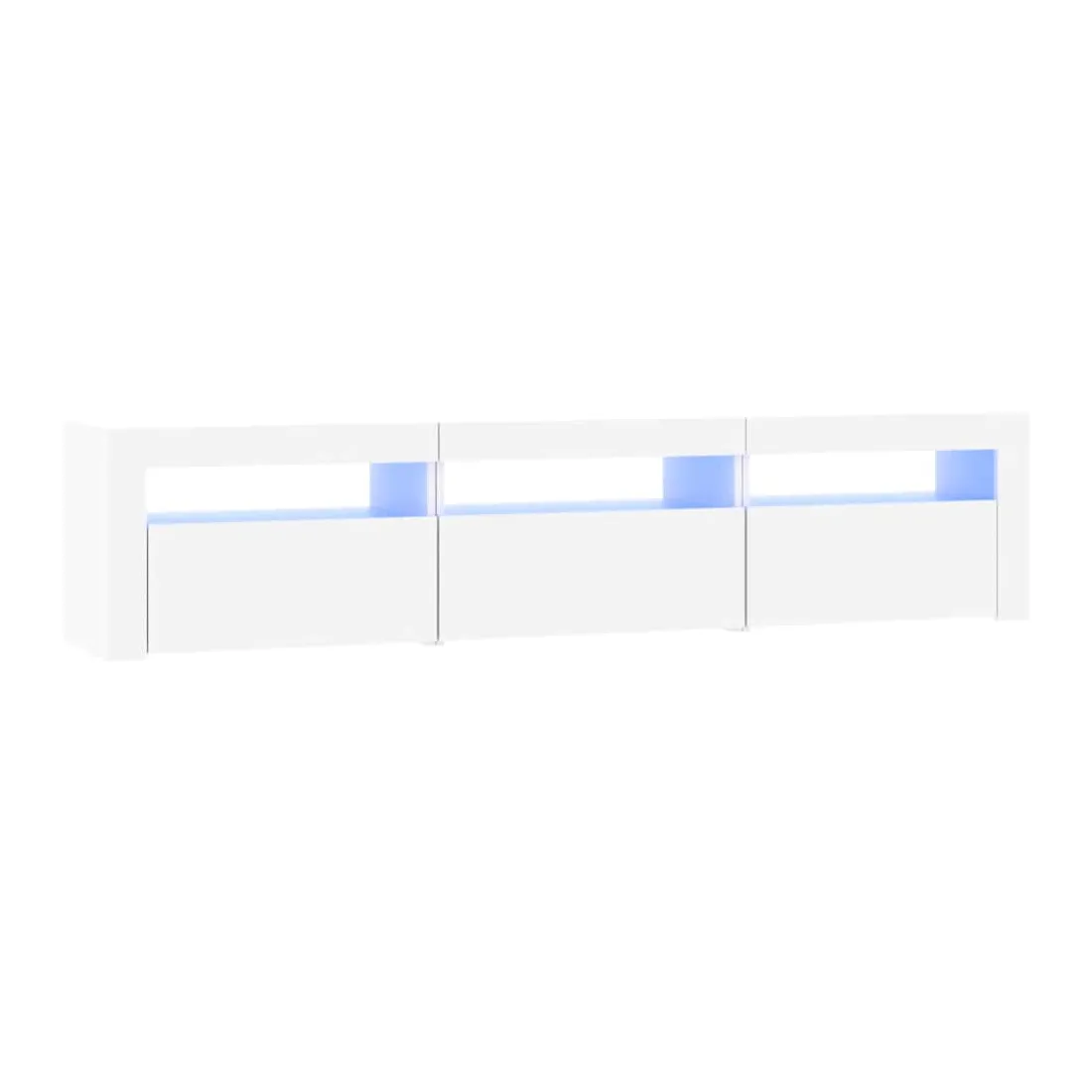 Avec un design à la fois tendance et pratique, ce meuble TV avec éclairage LED deviendra certainement un point central de votre pièce. Matériau pratique : le bois d'ingénierie est d'une qualité exceptionnelle avec une surface lisse et présente également résistance, stabilité et résistance à l'humidité. Lumières LED colorées : le meuble TV est doté de lumières LED RVB, qui ont différents menus pour changer la couleur des lumières et laisser la couleur s'ajuster automatiquement. Les lumières LED soulignent l'aspect moderne et contribuent à la sensation de tendance.Grand espace de rangement : le meuble TV offre un grand espace de rangement pour garder vos magazines, livres, télécommandes et autres petits objets bien organisés et à portée de main.Fonction d'affichage : le dessus robuste du meuble média est idéal pour exposer des objets décoratifs, des cadres photo et des plantes en pot. Remarque :Ce produit est doté d'un connecteur USB, mais la source d'alimentation certifiée de USB 5V n'est pas incluse.Chaque produit est livré avec un manuel de montage dans la boîte pour un montage facile.