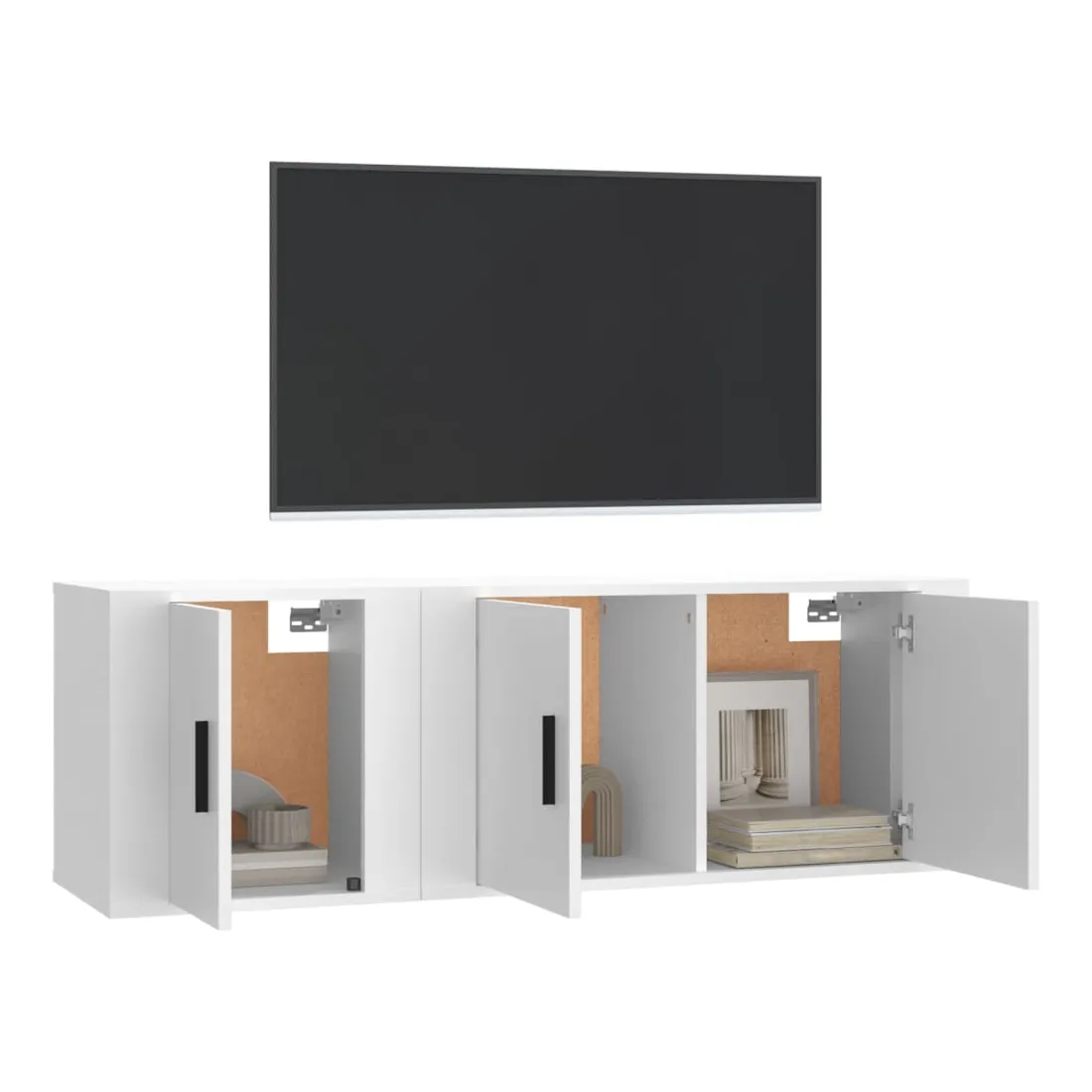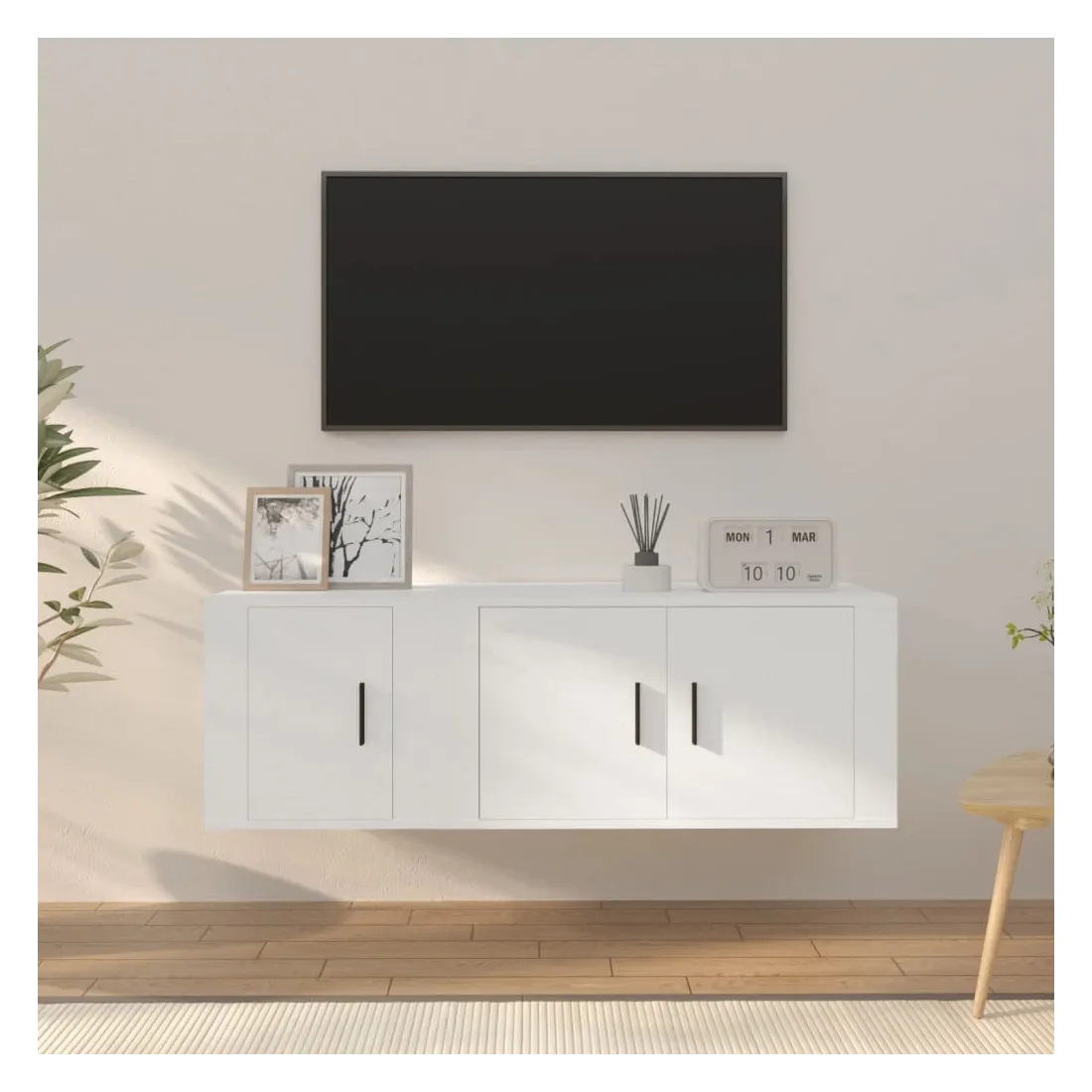 Cet ensemble de meubles TV classique est conçu pour être le point central de votre pièce, avec un design à la fois tendance et pratique. Matériau robuste : le bois d'ingénierie est d'une qualité exceptionnelle avec une surface lisse et présente également résistance, stabilité et résistance à l'humidité. Fabriqués en bois d'ingénierie, ces meubles TV sont faciles à nettoyer.Grand espace de rangement : ces meubles TV offrent un grand espace de rangement pour garder tous vos magazines, DVD et autres articles bien organisés.Fonction murale : ces armoires multimédias ne prennent pas de place au sol. Vous pouvez facilement les accrocher au mur.Portes pratique : gardez vos essentiels à l'abri de la poussière en les cachant derrière les portes des meubles multimédia. Bon à savoir :Pour faciliter au maximum le montage, chaque produit est livré avec des instructions.Les vis et les chevilles pour l'intérieur du mur ne sont pas incluses. Nous vous conseillons de trouver et d'utiliser des vis et des chevilles adaptées spécifiquement à vos murs. Si vous n'êtes pas sûr, vous pouvez consulter un professionnel. Veuillez lire et suivre chaque étape des instructions.