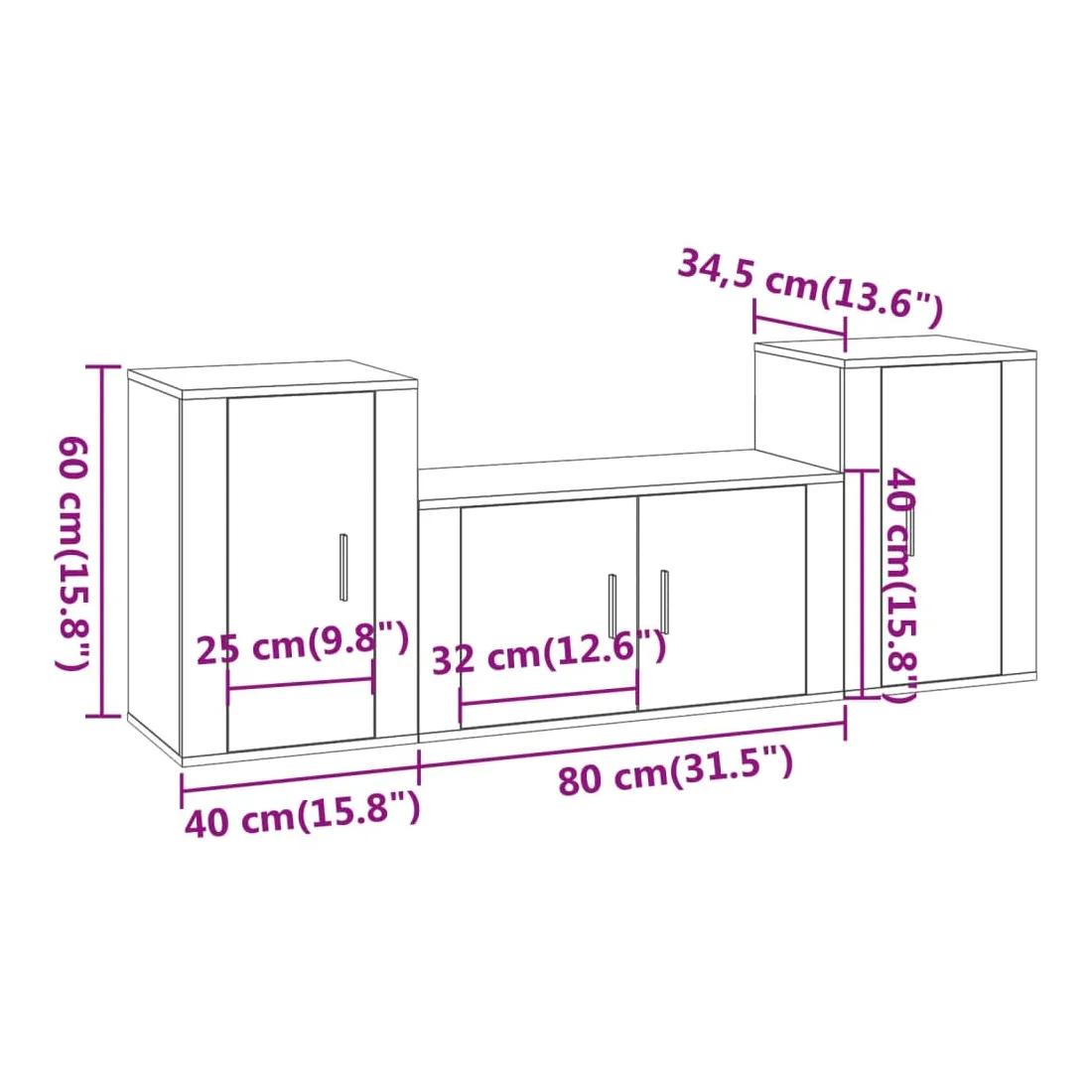 - 1 x meuble TV : 80 x 34,5 x 40 cm (L x l x H)