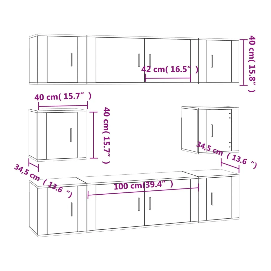 - 6 x meuble TV : 40 x 34,5 x 40 cm (L x l x H)