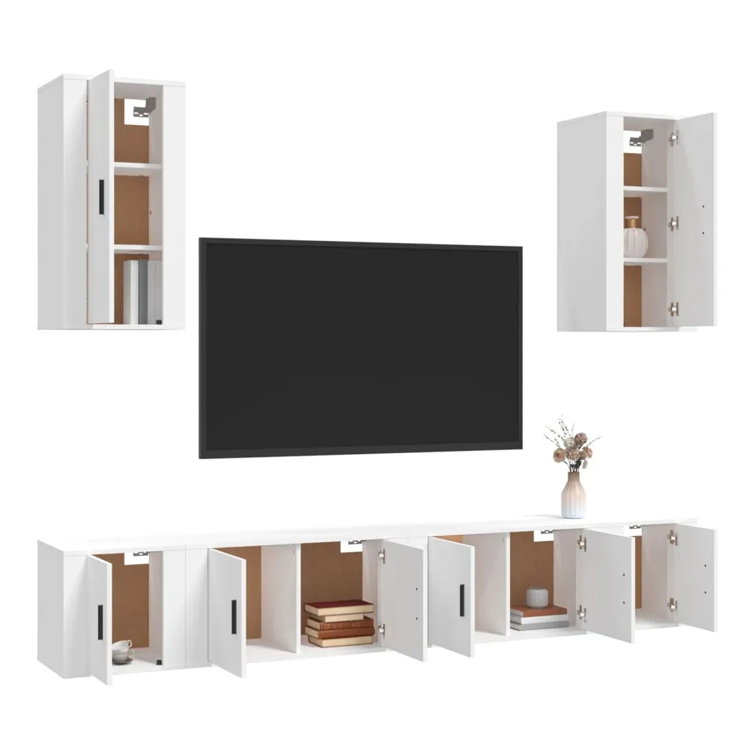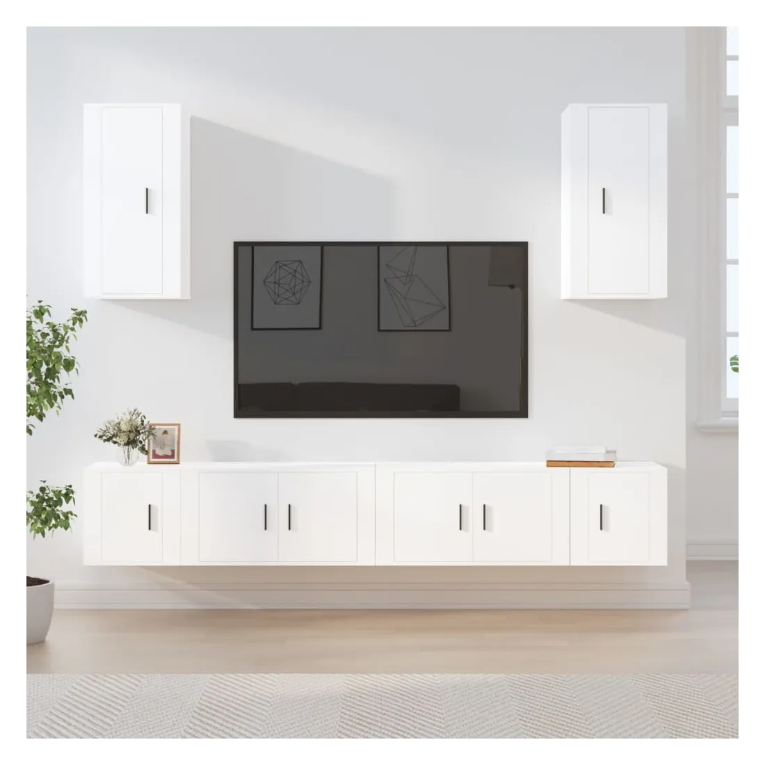 Cet ensemble de meubles TV classique est conçu pour être le point central de votre pièce, avec un design à la fois tendance et pratique. Matériau robuste : le bois d'ingénierie est d'une qualité exceptionnelle avec une surface lisse et présente également résistance, stabilité et résistance à l'humidité.Grand espace de rangement : l'ensemble de meubles TV offre un grand espace de rangement pour garder tous vos magazines, DVD et autres articles bien organisés.Design mural : le meuble TV ne prend pas de place au sol. Vous pouvez l'accrocher au mur facilement. Bon à savoir :Pour faciliter au maximum le montage, chaque produit est livré avec des instructions.Les vis et les chevilles pour l'intérieur du mur ne sont pas incluses. Nous vous conseillons de trouver et d'utiliser des vis et des chevilles adaptées spécifiquement à vos murs. Si vous n'êtes pas sûr, vous pouvez consulter un professionnel. Veuillez lire et suivre chaque étape des instructions.