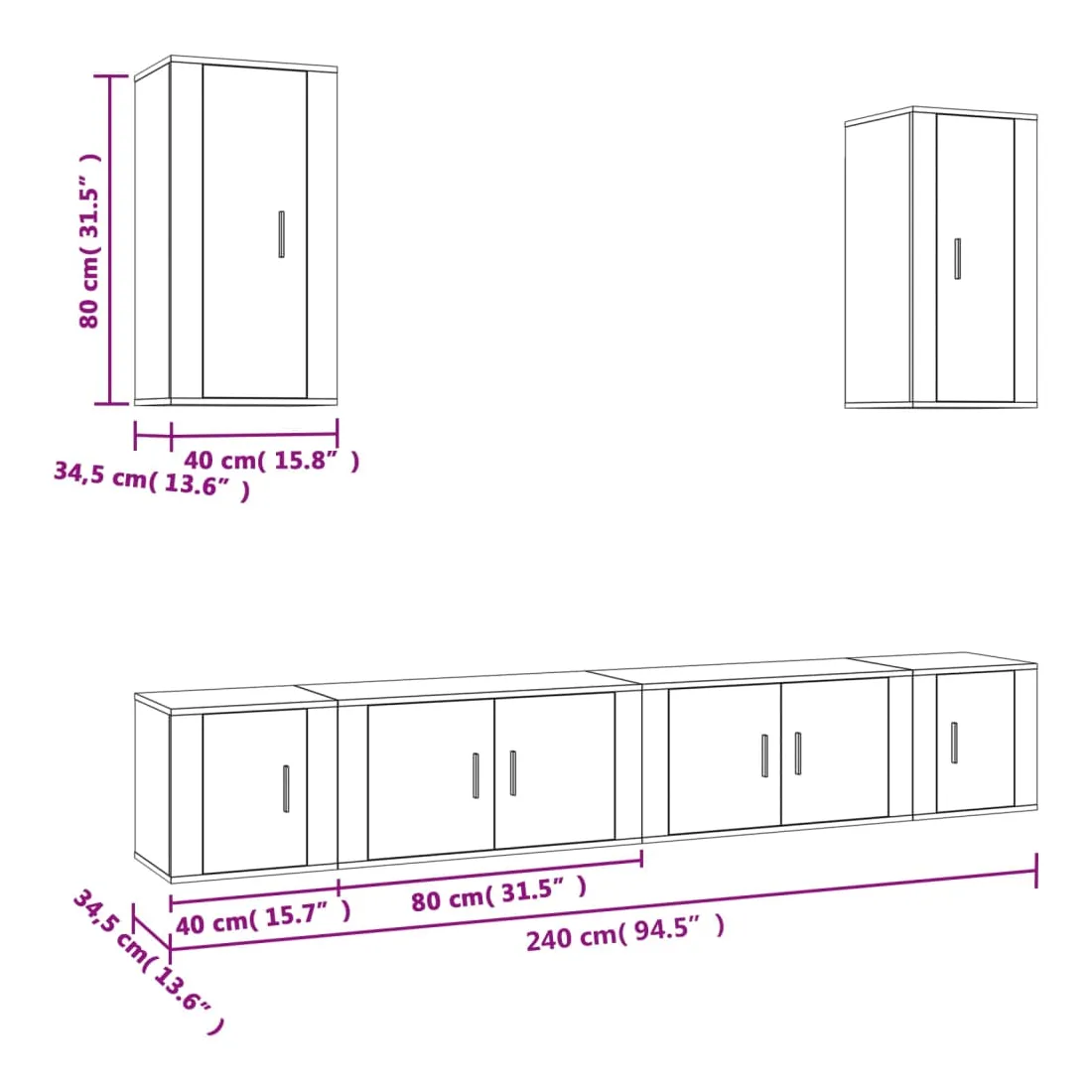 - 2 x meuble TV : 40 x 34,5 x 80 cm (L x l x H)