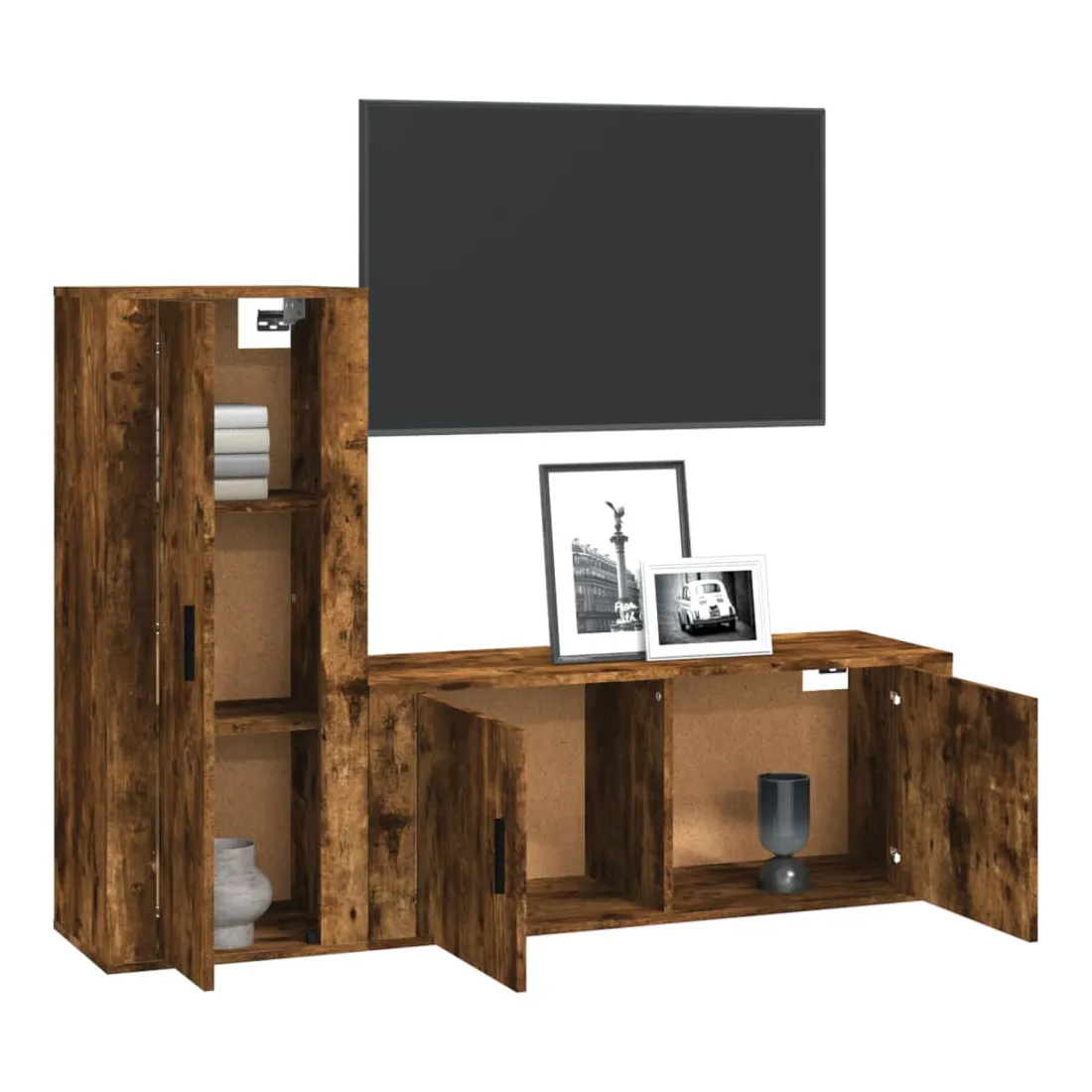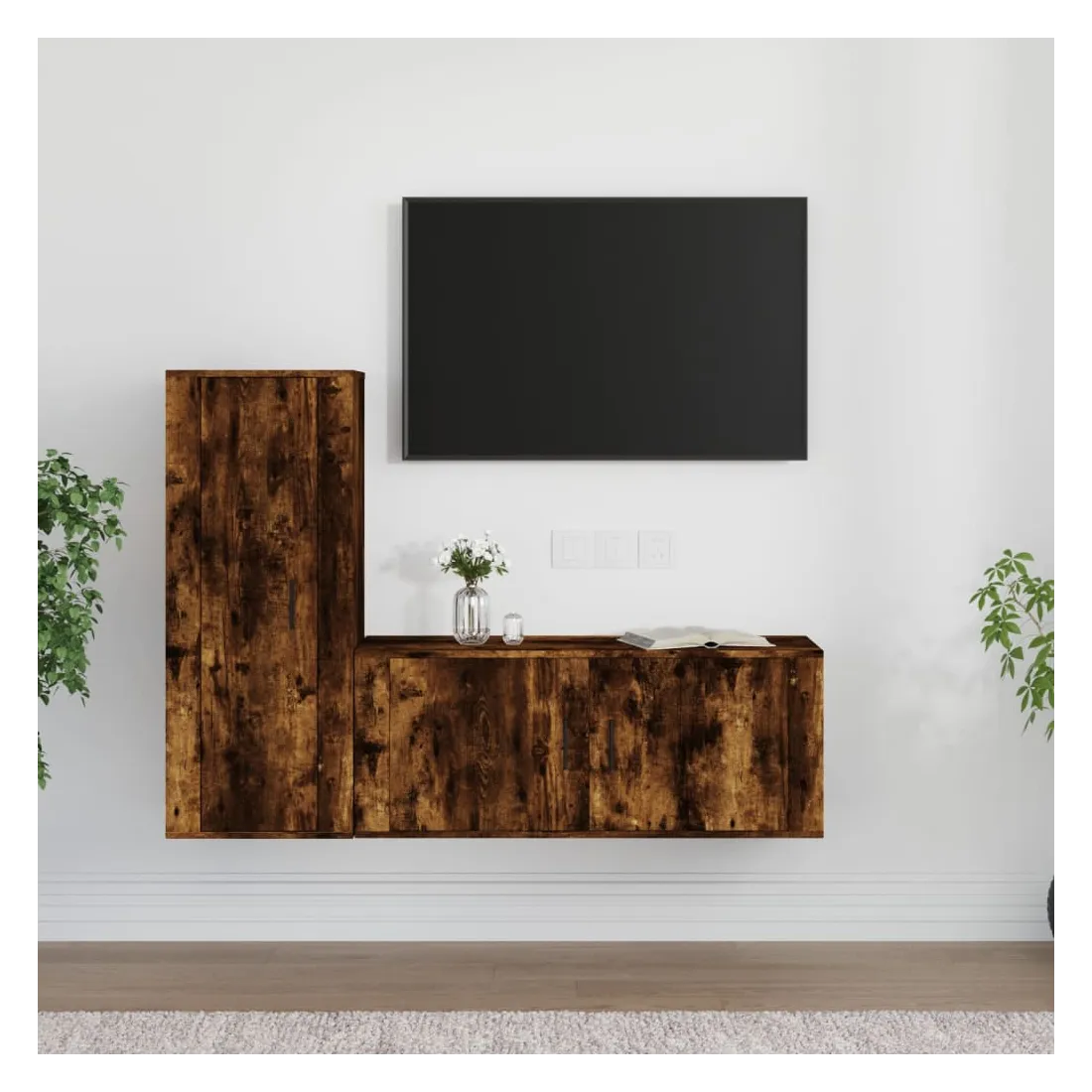 vidaXLCet ensemble de meubles TV classique est conçu pour être le point central de votre pièce, avec un design à la fois tendance et pratique. Matériau robuste : le bois d'ingénierie est d'une qualité exceptionnelle avec une surface lisse et présente également résistance, stabilité et résistance à l'humidité. Fabriqués en bois d'ingénierie, ces meubles TV sont faciles à nettoyer.Grand espace de rangement : ces meubles TV offrent un grand espace de rangement pour garder tous vos magazines, DVD et autres articles bien organisés.Fonction murale : l'armoire multimédia ne prend pas de place au sol. Vous pouvez la suspendre facilement au mur.Portes pratique : gardez vos essentiels à l'abri de la poussière en les cachant derrière la porte de l’unité multimédia. Bon à savoir :Pour faciliter au maximum le montage, chaque produit est livré avec des instructions.Les vis et les chevilles pour l'intérieur du mur ne sont pas incluses. Nous vous conseillons de trouver et d'utiliser des vis et des chevilles adaptées spécifiquement à vos murs. Si vous n'êtes pas sûr, vous pouvez consulter un professionnel. Veuillez lire et suivre chaque étape des instructions.