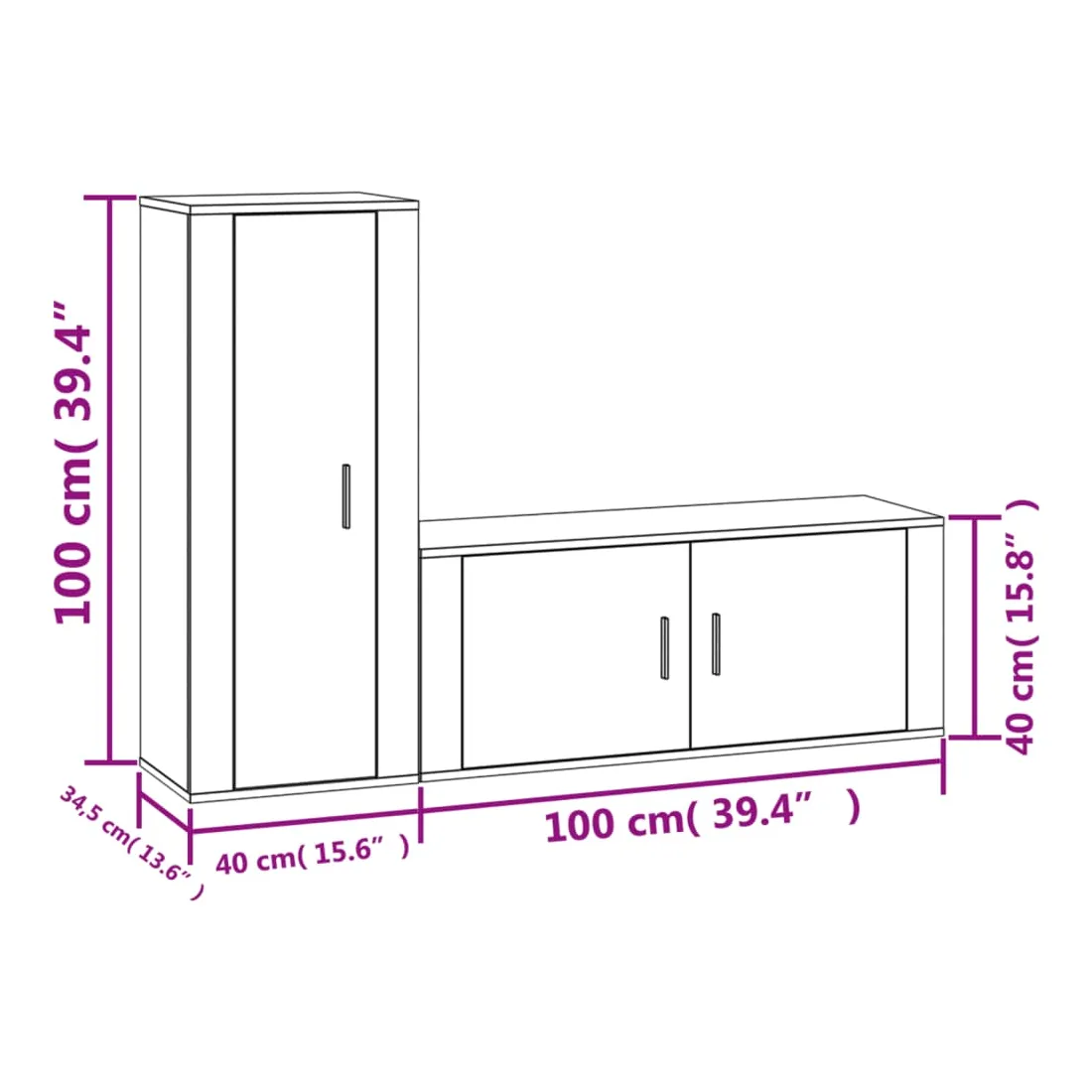 - 1 x meuble TV : 40 x 34,5 x 100 cm (l x P x H)