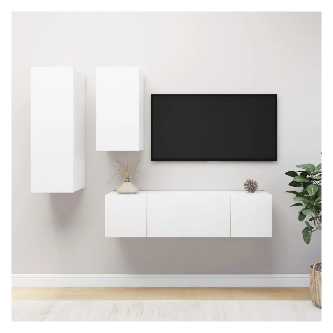Ce meuble TV, doté d'un design moderne et d'un grand espace de rangement, devient un point de mire de votre salon. Cet ensemble de meuble TV suspendu est fabriqué en bois d'ingénierie, ce qui le rend robuste et durable. L'ensemble est fixé au mur, ce qui en fait un supplément intemporel à votre maison. L’ensemble dispose de plusieurs compartiments qui en font un endroit idéal pour stocker tous vos magazines, DVD ou autres articles. Cet ensemble de meuble Hifi est facile à nettoyer avec un chiffon humide.