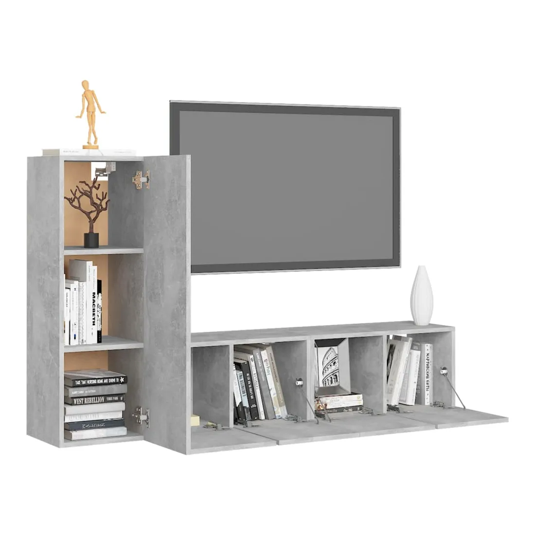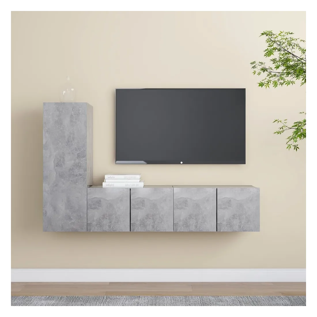 Équipé d'un grand espace de rangement pour organiser divers articles, cet ensemble de meuble TV suspendu sera certainement un supplément pratique et accrocheur dans votre maison. Le meuble TV est fixé au mur, ce qui en fait un supplément intemporel à votre maison. Cet ensemble d’armoire HiFi est idéal pour afficher ou garder bien organisés ou à portée de main tous les articles préférés. De plus, l’ensemble d’armoire stéréo est facile à nettoyer avec un chiffon humide.