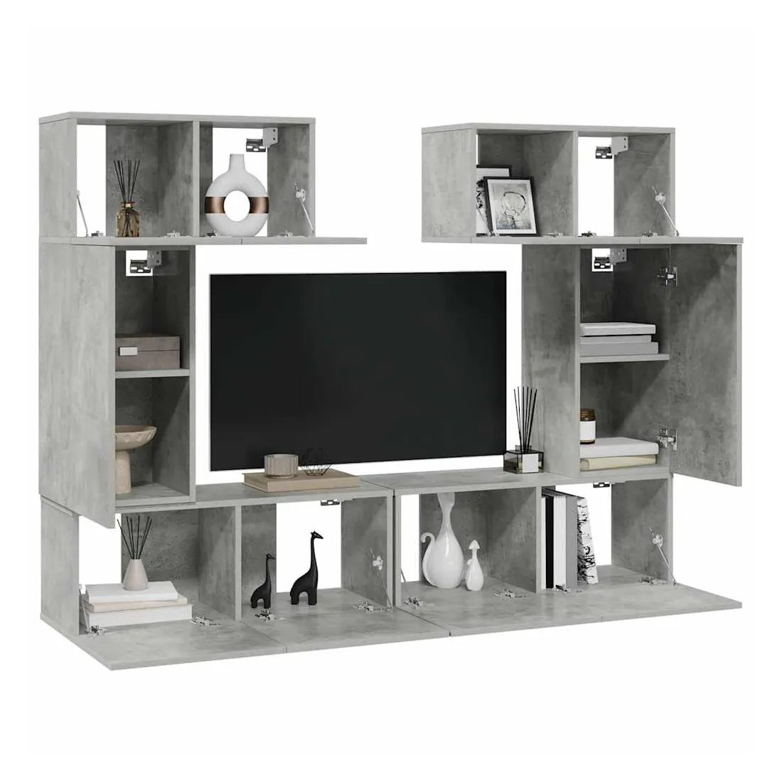 Ensemble de meuble TV 6 pcs Gris béton Bois d'ingénierie
