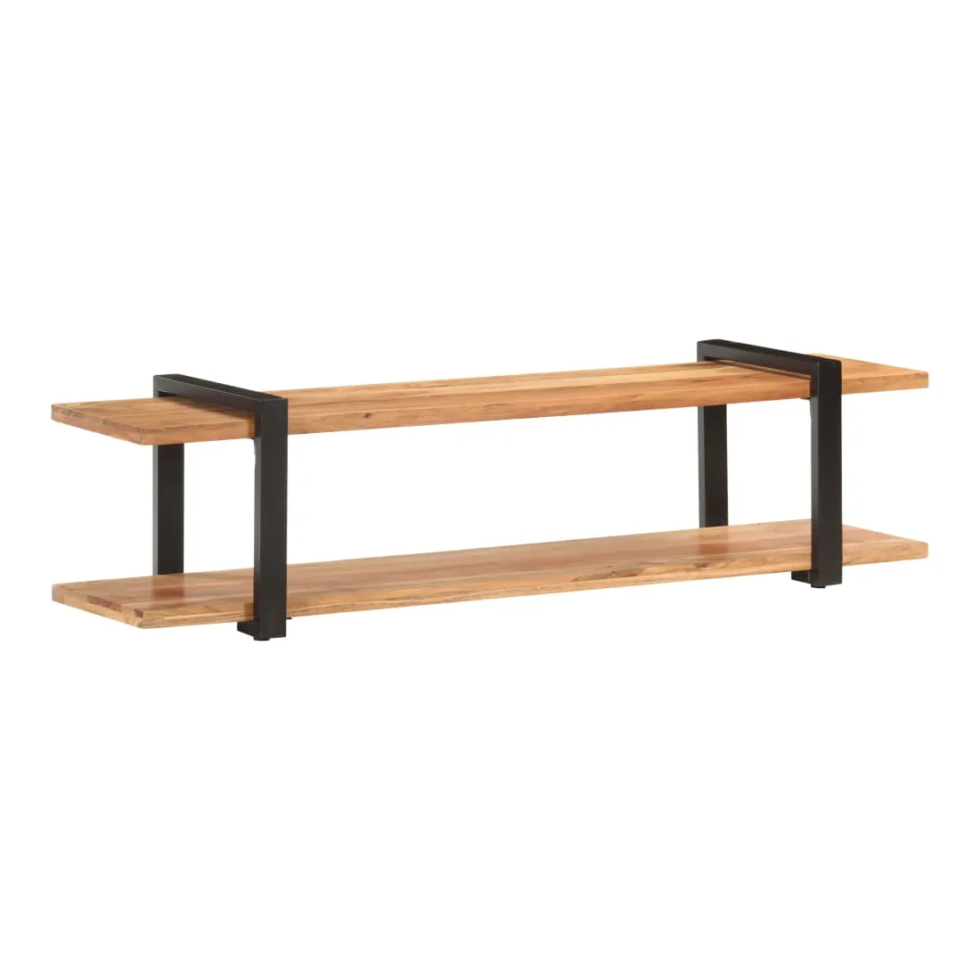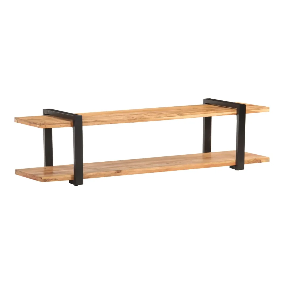 Cet élégant meuble TV en bois de style industriel est le point de mire de votre salon ou de votre espace de divertissement. Il peut également être utilisé comme table basse, buffet, bahut, etc. Le meuble TV est fait de bois d'acacia massif, ce qui le rend stable et durable. Le savoir-faire et les beaux grains de bois rendent chaque meuble unique et légèrement différent l'un de l'autre. Les pieds en fer enduit de poudre noire ajoute à sa stabilité supplémentaire. L'étagère inférieure vous permet de garder les lecteurs DVD, les consoles de jeux, les appareils de diffusion en continu et les supports multimédia bien organisés. Remarque importante : les couleurs varient d'une pièce à l'autre, rendant chaque pièce unique. La livraison est aléatoire, garantissant l'exclusivité et l'individualité de votre produit.