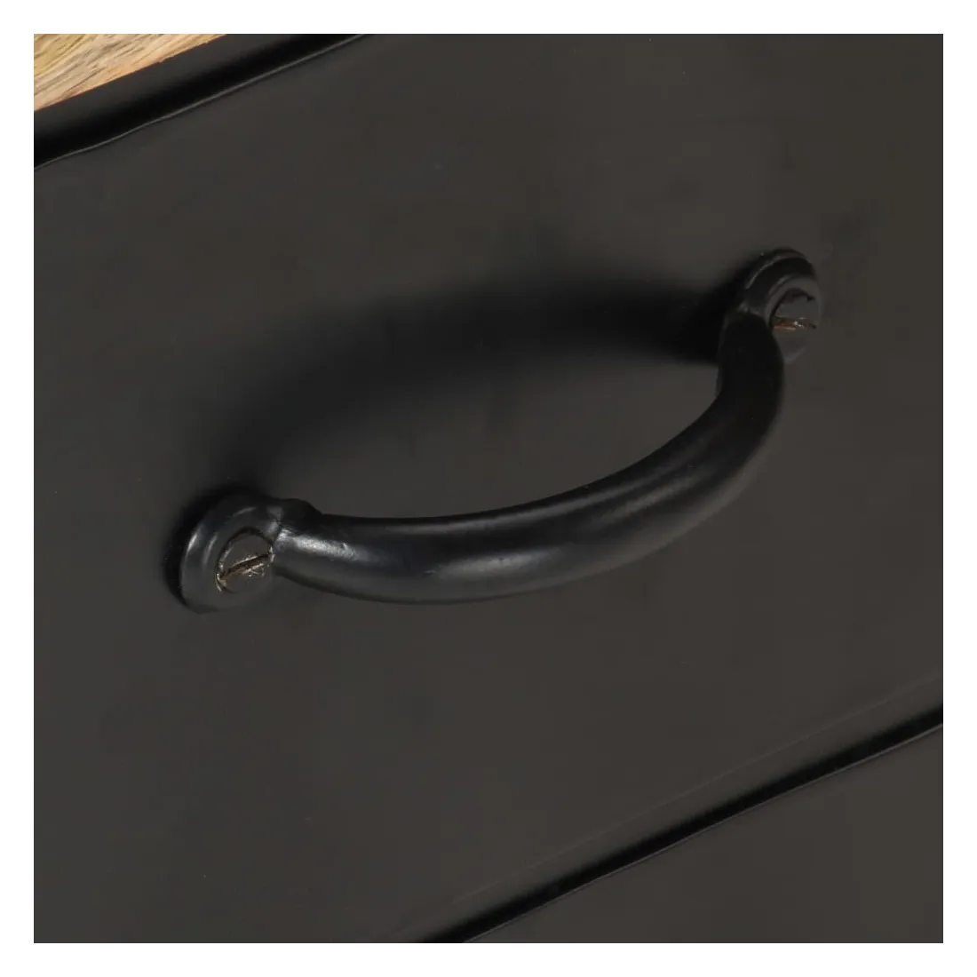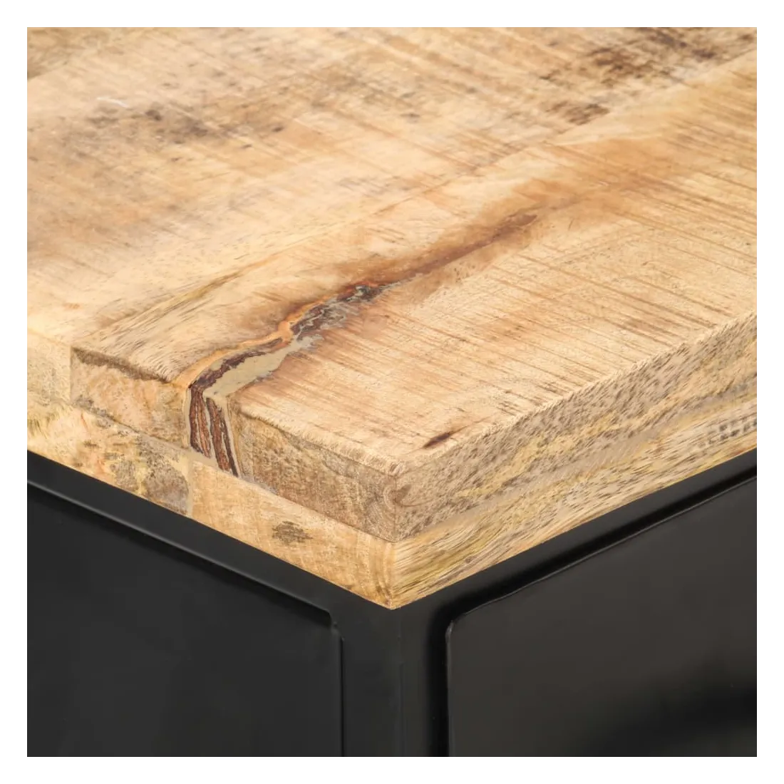 - Matériau : bois de manguier brut avec une finition naturelle, acier et fer avec revêtement en poudre noire