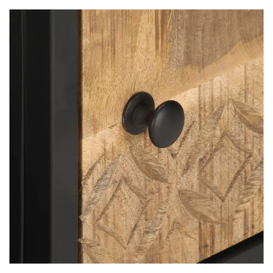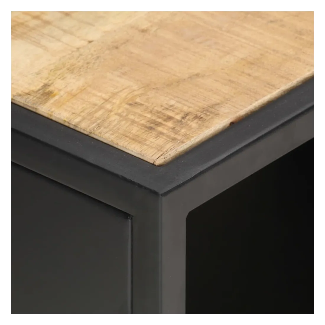 - Matériau : bois de manguier brut avec finition naturelle, fer enduit de poudre