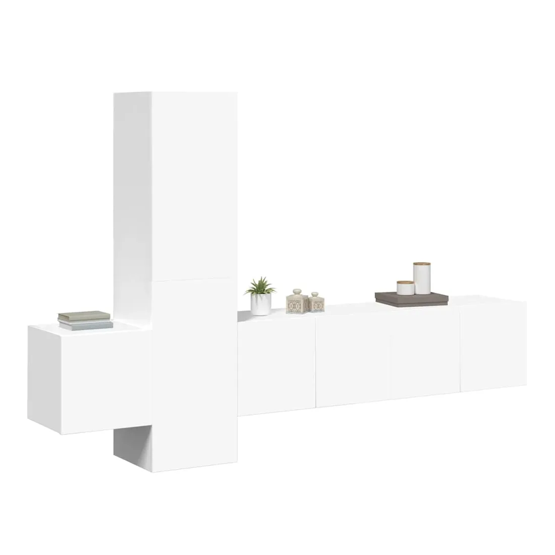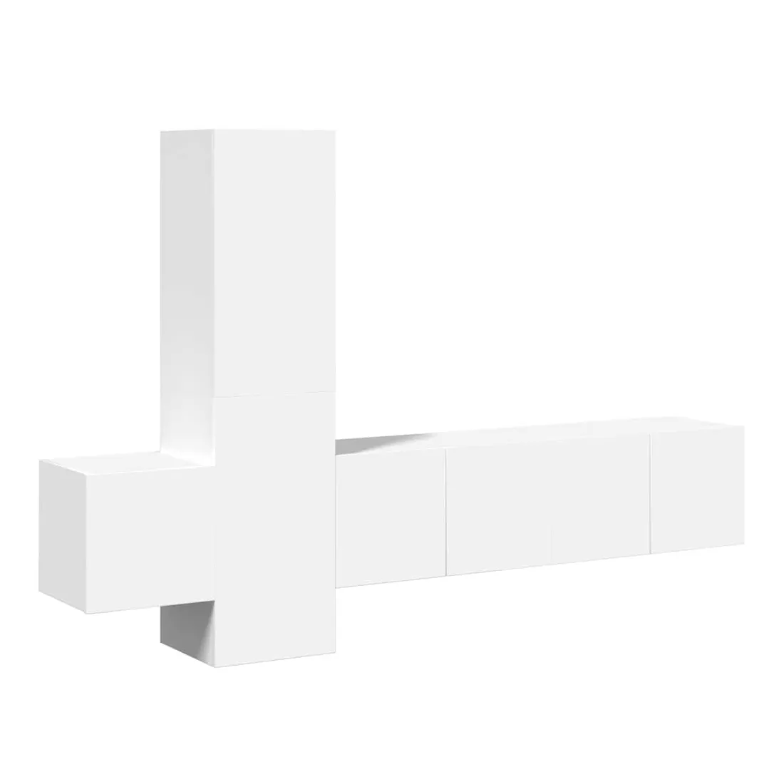 Cet ensemble de meuble TV robuste est destiné à être le point de mire de votre pièce avec un design à la fois tendance et pratique. Le meuble TV est fixé au mur, ce qui en fait un supplément intemporel à votre maison. Il offre de nombreux compartiments de rangement, ce qui en fait un endroit idéal pour stocker tous vos livres, magazines, DVD ou autres objets. Le meuble stéréo est facile à entretenir et à nettoyer avec un chiffon humide.