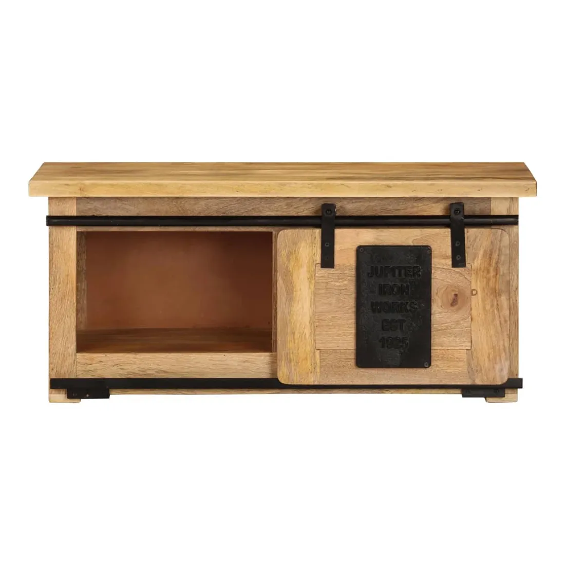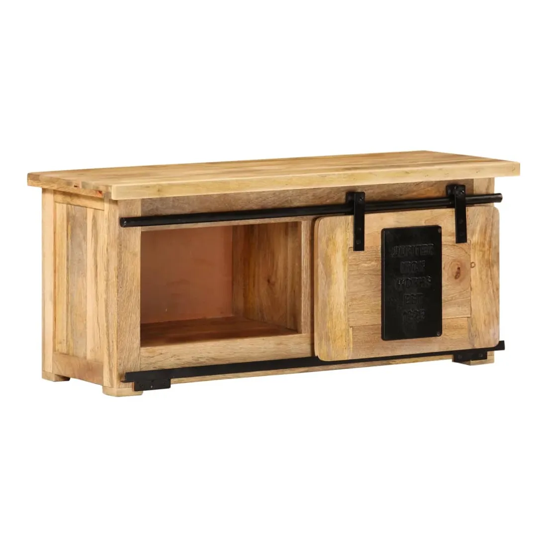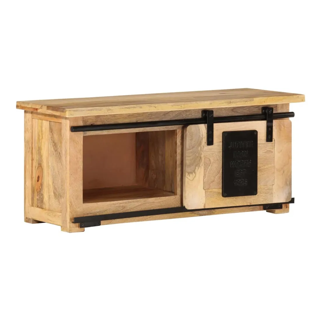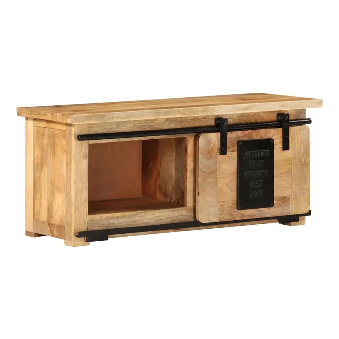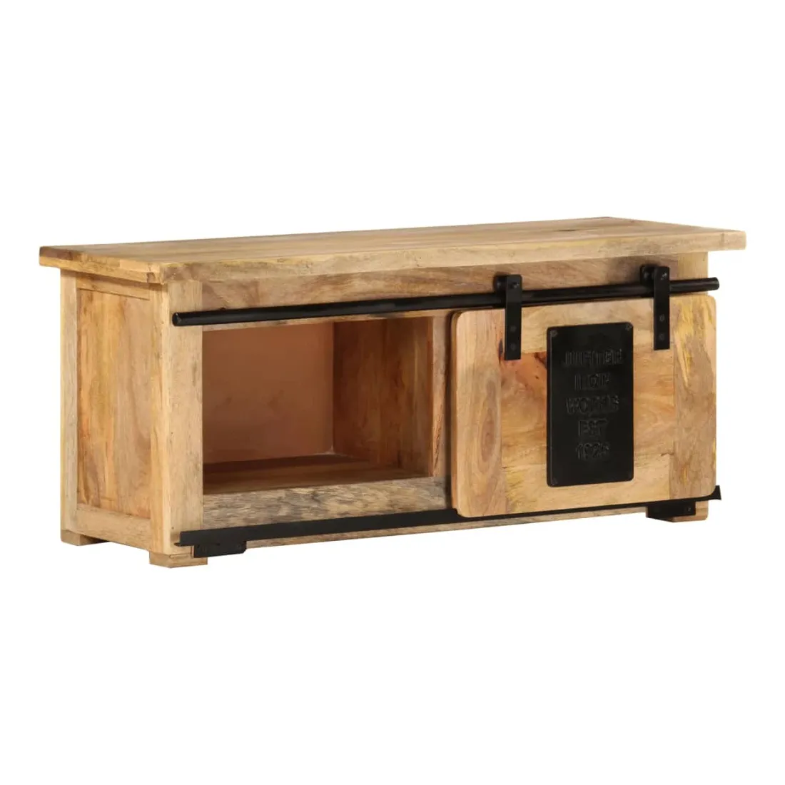 Ce meuble de télévision rustique est la voie à suivre si vous cherchez à ajouter un peu de style vintage au décor de votre maison. L’armoire latérale est en bois de manguier massif avec une finition naturelle et en acier, qui est durable et stable. Le savoir-faire artisanal ajoute à son style rétro spectaculaire. Le bois de manguier est spécialement traité pour le rendre plus résistant à l’usure tout en lui permettant de conserver son charme naturel. Ce meuble TV, doté de 2 compartiments et d’un rail coulissant, est idéal pour garder votre lecteur DVD, votre console de jeu, votre appareil de streaming et vos supports multimédia bien organisés. L’armoire Hi-Fi peut également être utilisée comme armoire latérale, buffet bas, buffet, etc. Remarque importante : les couleurs et les motifs de grain varient d'une pièce à l'autre, rendant chacun de meubles TV unique. La livraison est aléatoire, ce qui garantit l'exclusivité et l'individualité de votre produit.