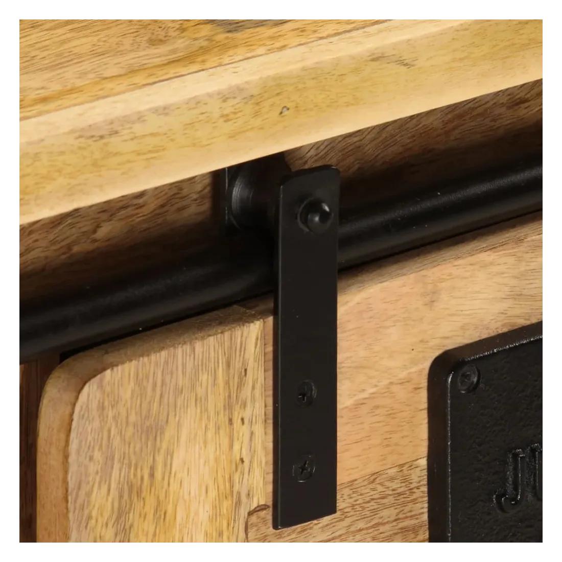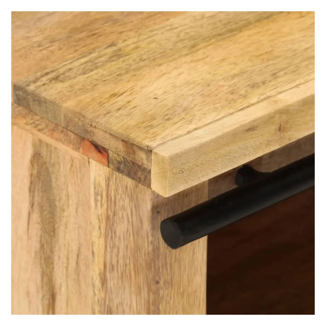 - Matériau : bois de manguier massif avec une finition naturelle, acier