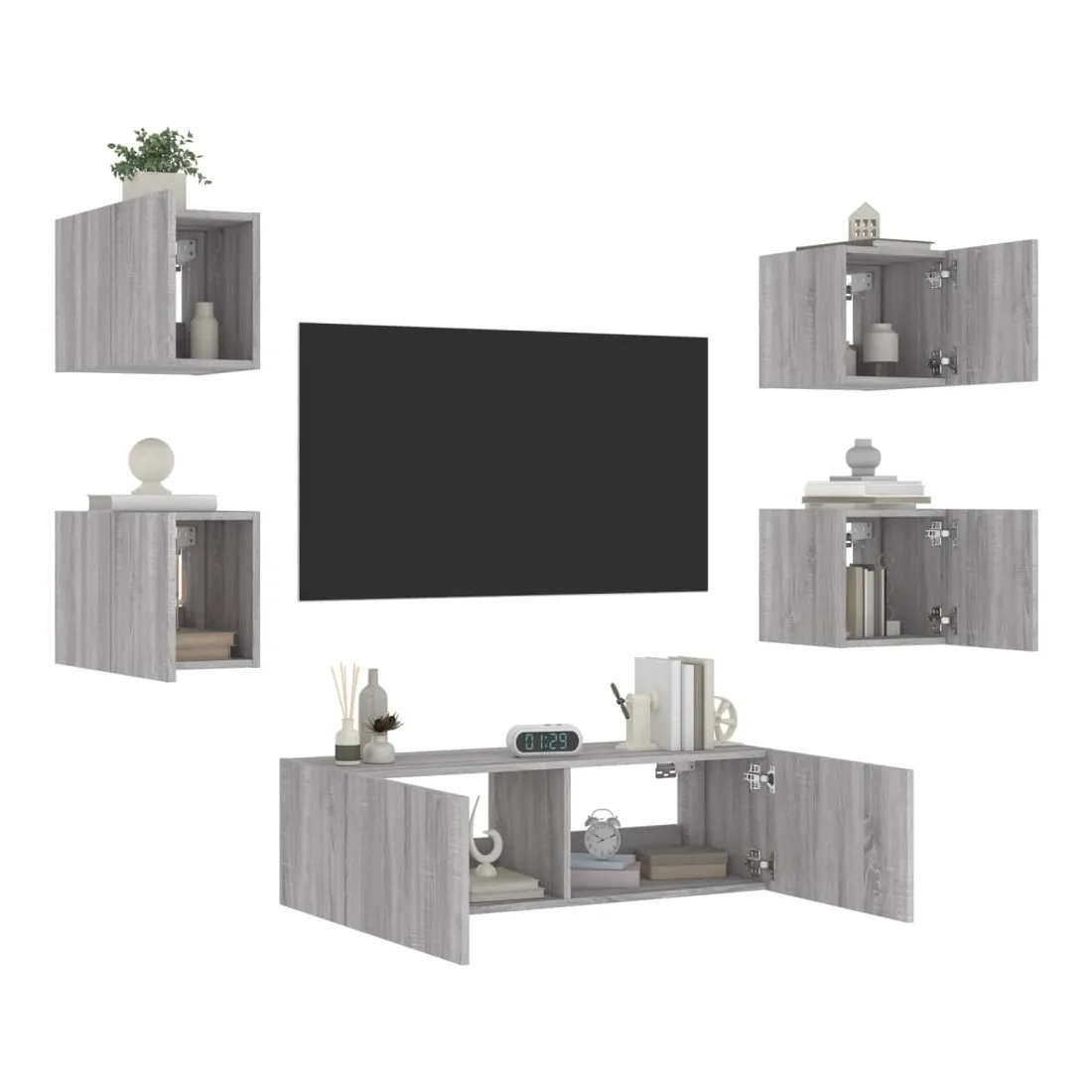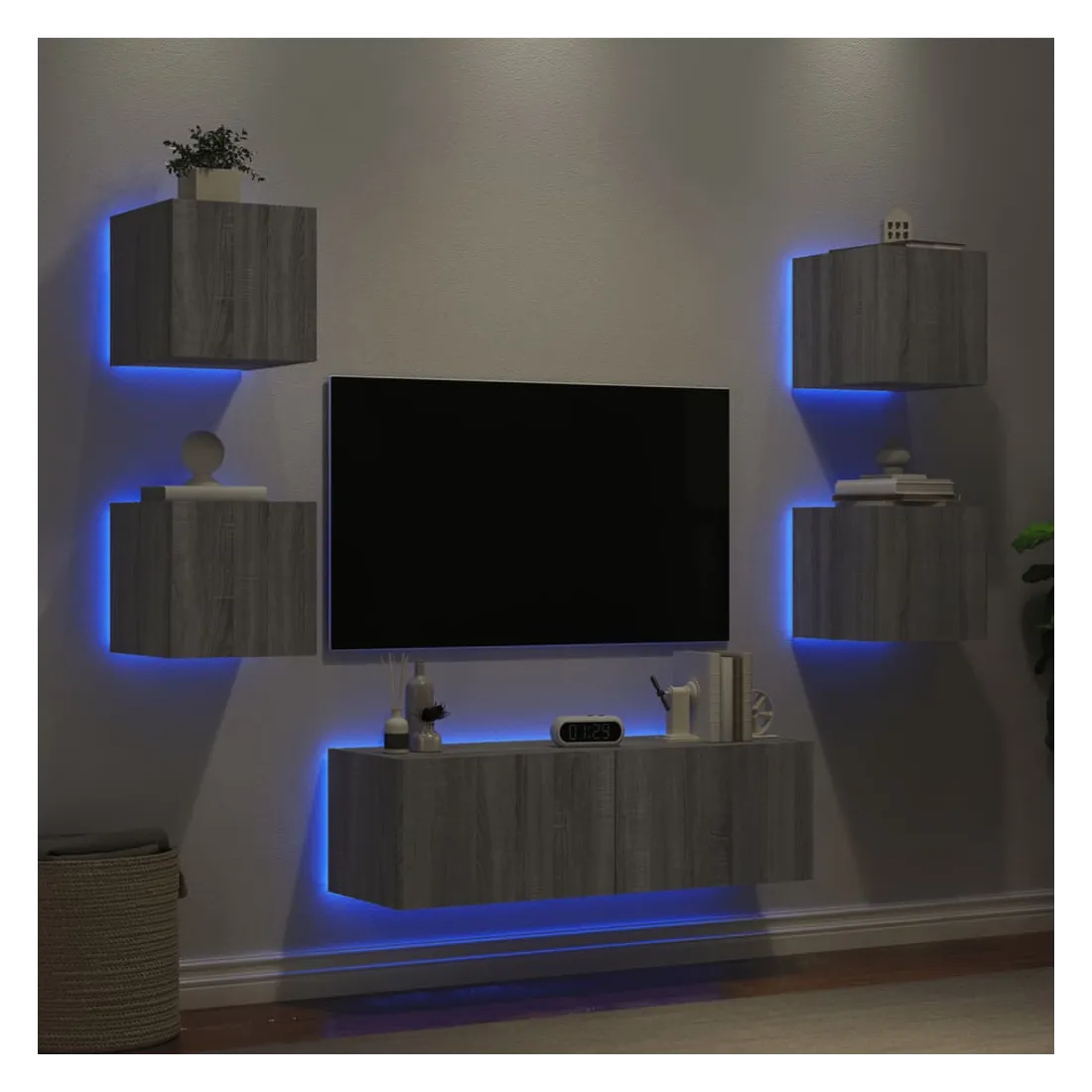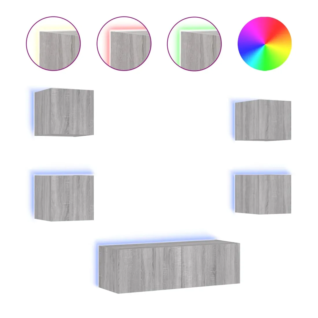 Meuble TV muraux 5 pcs avec lumières LED sonoma gris