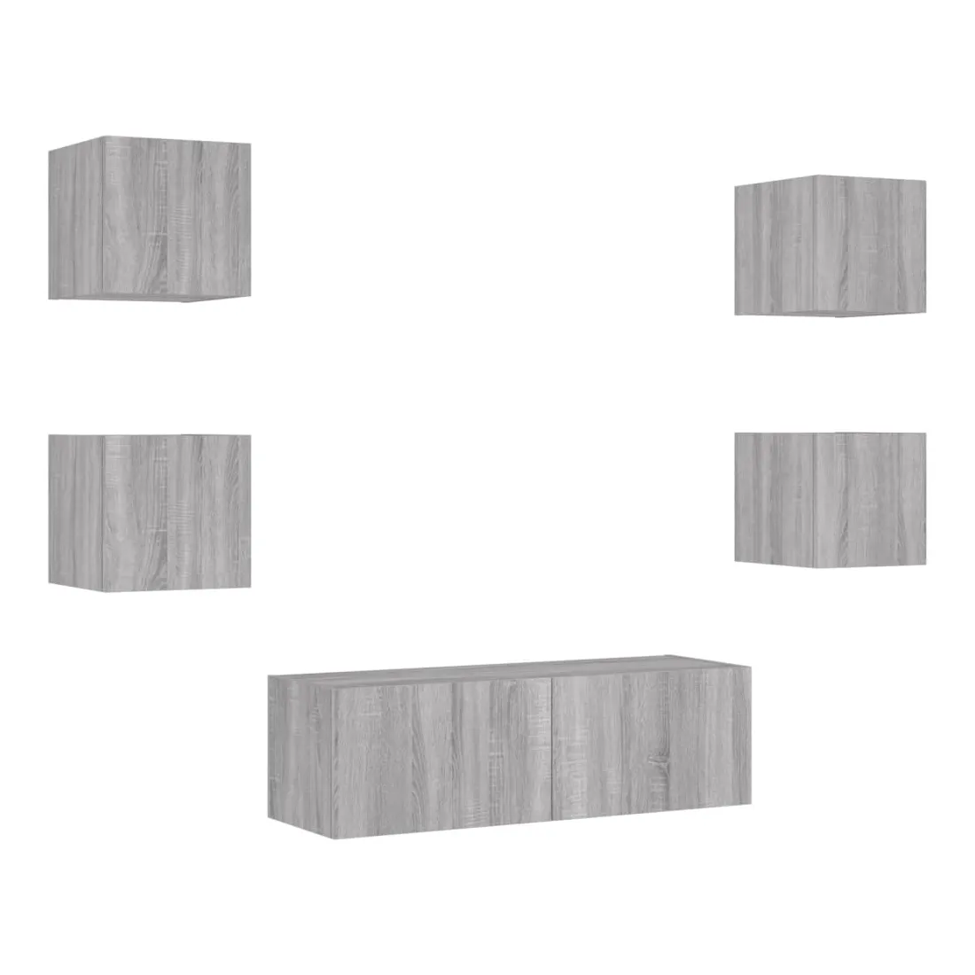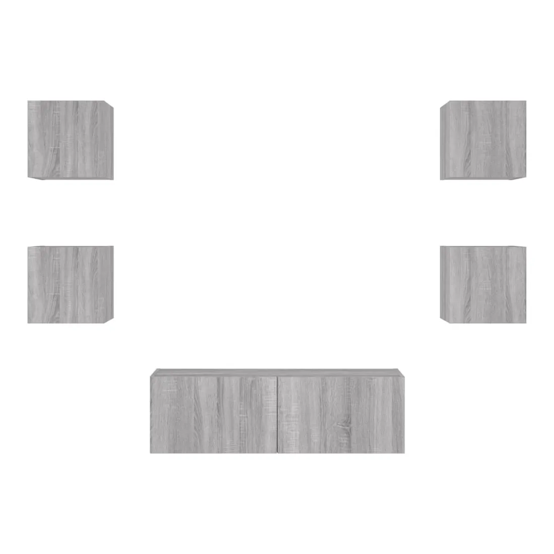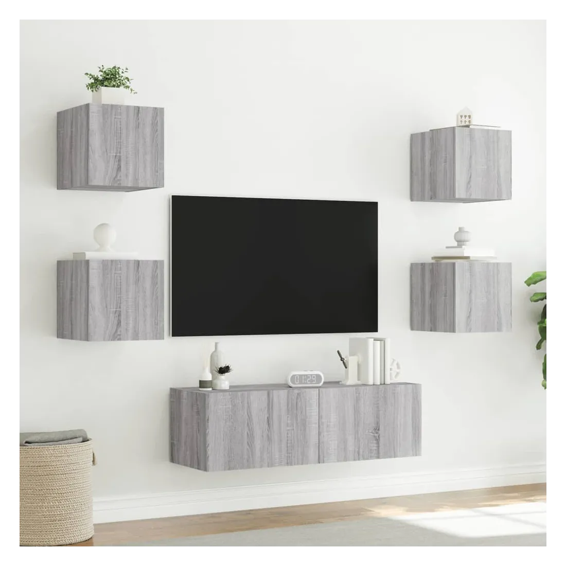 Meuble TV muraux 5 pcs avec lumières LED sonoma gris