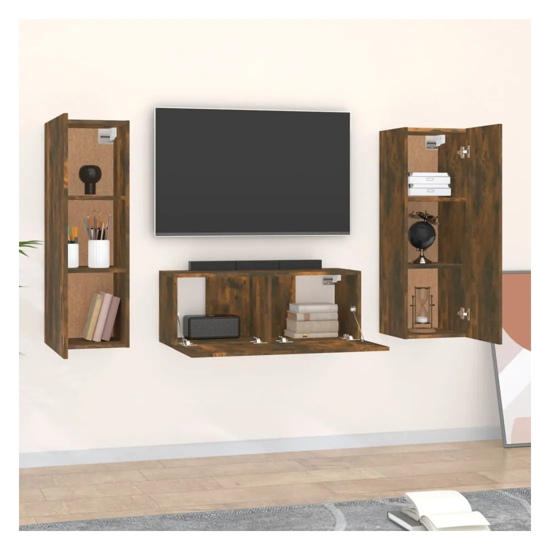 Cet ensemble de meubles TV classique est conçu pour être le point central de votre pièce, avec un design à la fois tendance et pratique. Matériau robuste : le bois d'ingénierie est d'une qualité exceptionnelle avec une surface lisse et présente également résistance, stabilité et résistance à l'humidité.Grand espace de rangement : chaque meuble TV offre un grand espace de rangement pour garder tous vos magazines, DVD et autres articles bien organisés.Design mural : le meuble TV ne prend pas de place au sol. Vous pouvez l'accrocher au mur facilement. Remarque :Les vis et les chevilles pour l'intérieur du mur ne sont pas incluses. Recherchez et utilisez des vis et des chevilles adaptées à vos murs. Si vous n'êtes pas sûr, demandez conseil à un professionnel. Lisez et suivez attentivement chaque étape des instructions.Chaque produit est livré avec un manuel de montage dans la boîte pour un montage facile.