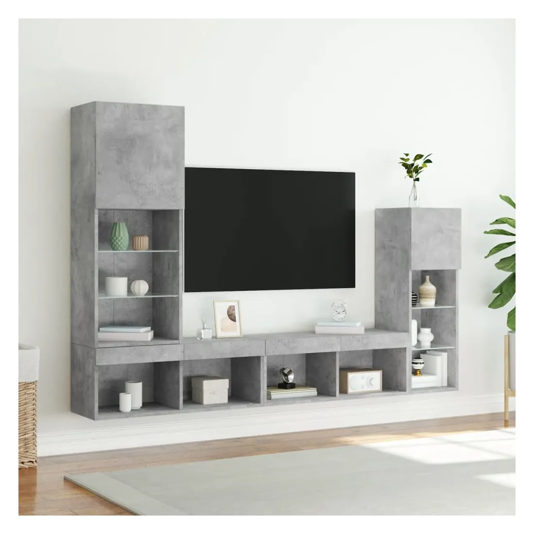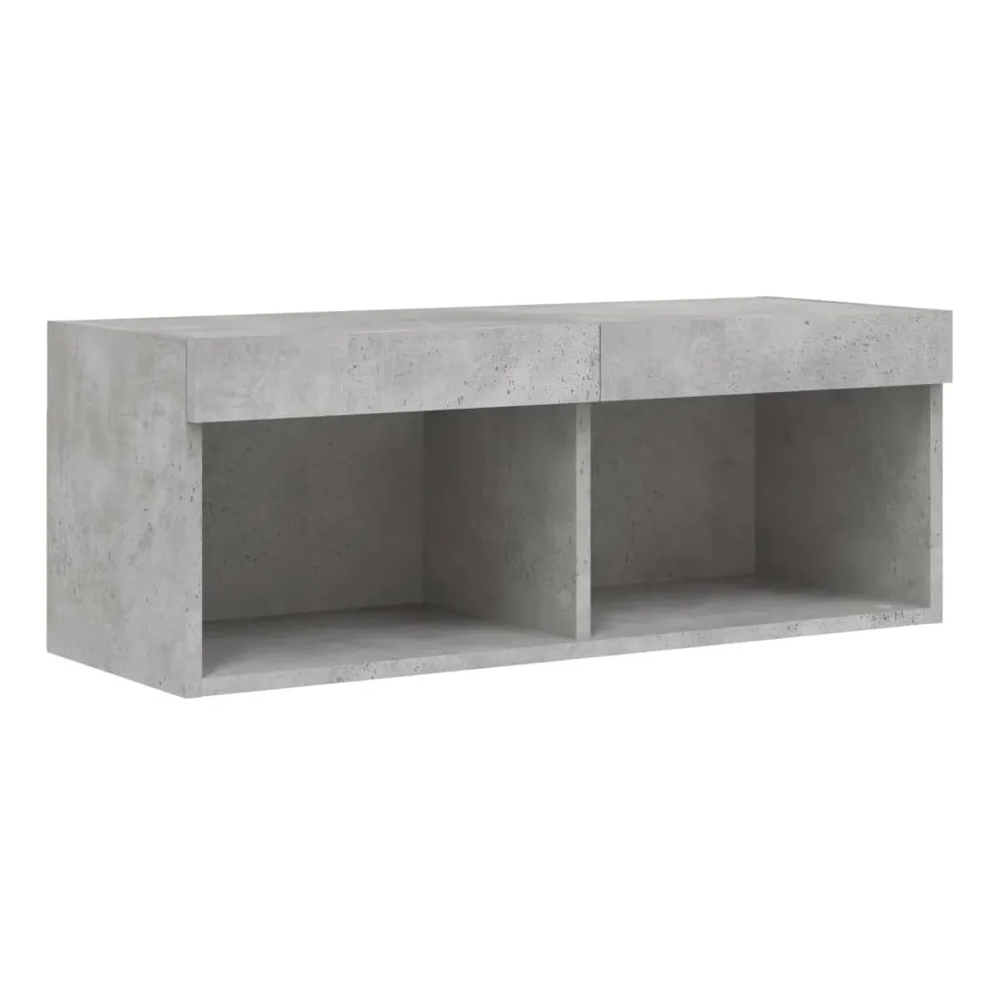 Ces unités murales TV sont la solution parfaite pour votre espace de vie afin de maximiser l'espace et de garder les surfaces au sol sans encombrement. Matériau robuste : le bois d'ingénierie est d'une qualité exceptionnelle avec une surface lisse et présente également résistance, stabilité et résistance à l'humidité.Lumières LED RVB : la unité TV est équipée de lumières LED RVB vibrantes. Avec divers menus personnalisables, vous pouvez changer sans effort la couleur des lumières et même les régler automatiquement. Ces lumières LED renforcent non seulement l'aspect contemporain du meuble TV flottant, mais aussi son attrait pour la mode.Design mural : le meuble de télévision peut être fixé au mur pour ajouter un espace de stockage supplémentaire. De cette façon, vous pouvez maximiser votre espace au sol et garder la zone propre.Grand espace de rangement : le meuble TV flottant est doté de différentes options de rangement, offrant ainsi un grand espace pour ranger vos objets quotidiens tels que les livres, les DVD, les accessoires multimédias et d'autres articles bien organisés et à portée de main.Design polyvalent : vous pouvez l'utiliser comme meuble TV ou le monter sur le mur du lieu de travail pour un rangement pratique des outils ou d'autres articles divers. De plus, il transforme un mur vide en un élément de décoration. Bon à savoir :Les vis et les chevilles pour l'intérieur du mur ne sont pas incluses. Nous vous conseillons de trouver et d'utiliser des vis et des chevilles adaptées spécifiquement à vos murs. Si vous n'êtes pas sûr, vous pouvez consulter un professionnel. Veuillez lire et suivre chaque étape des instructions.Ce produit est doté d'un connecteur USB qui nécessite une source d'alimentation USB de 5V certifiée (non incluse).