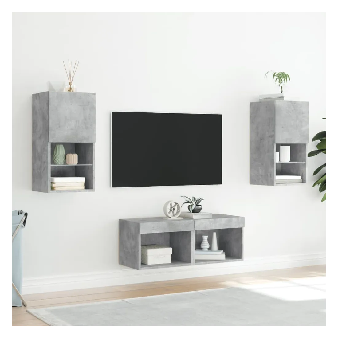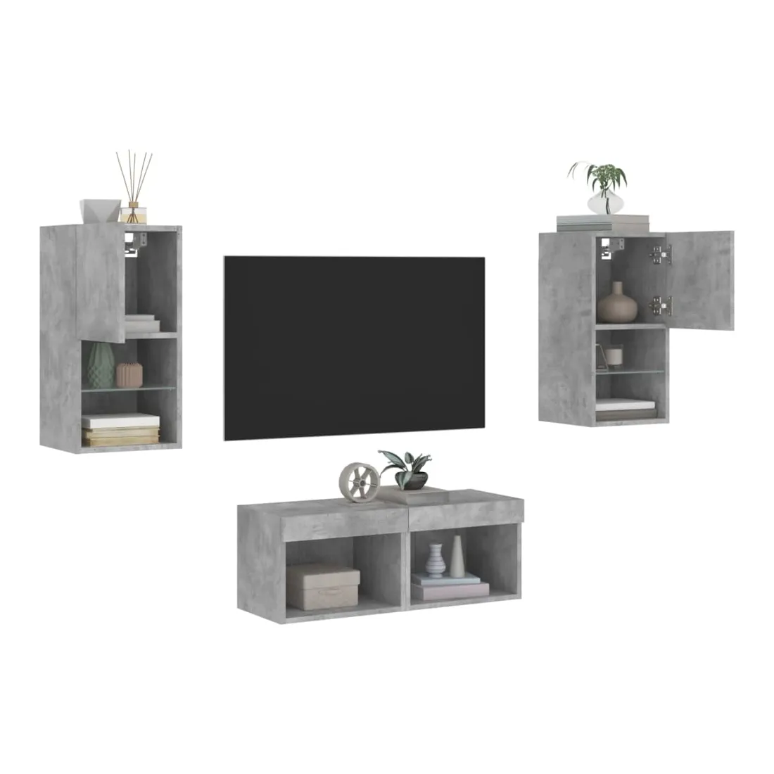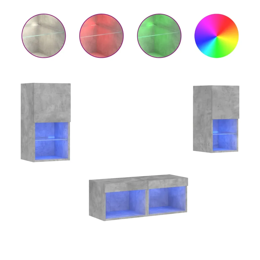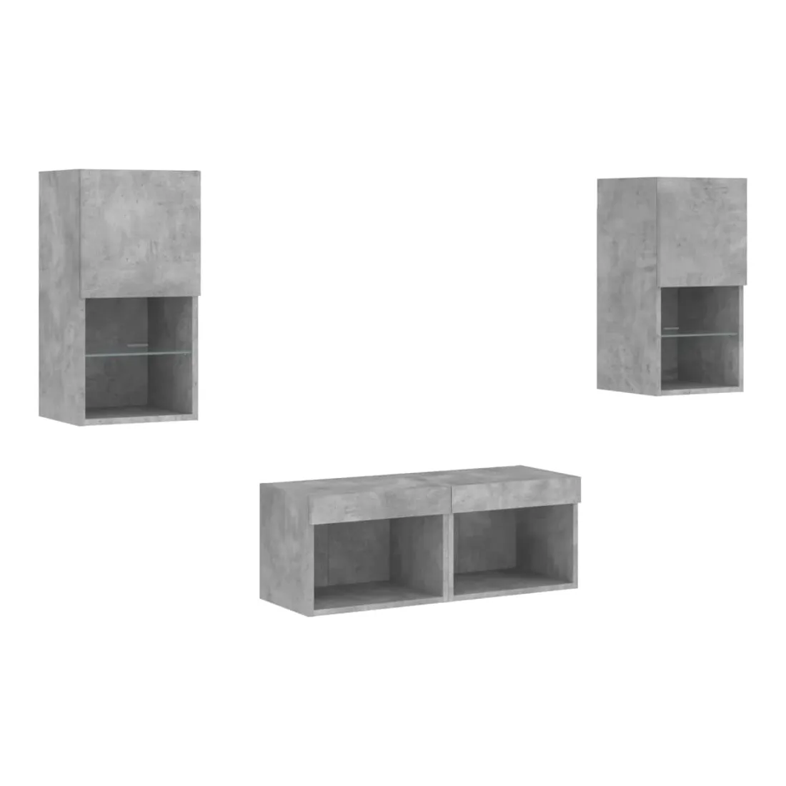 Meuble TV muraux 4 pcs avec lumières LED gris béton