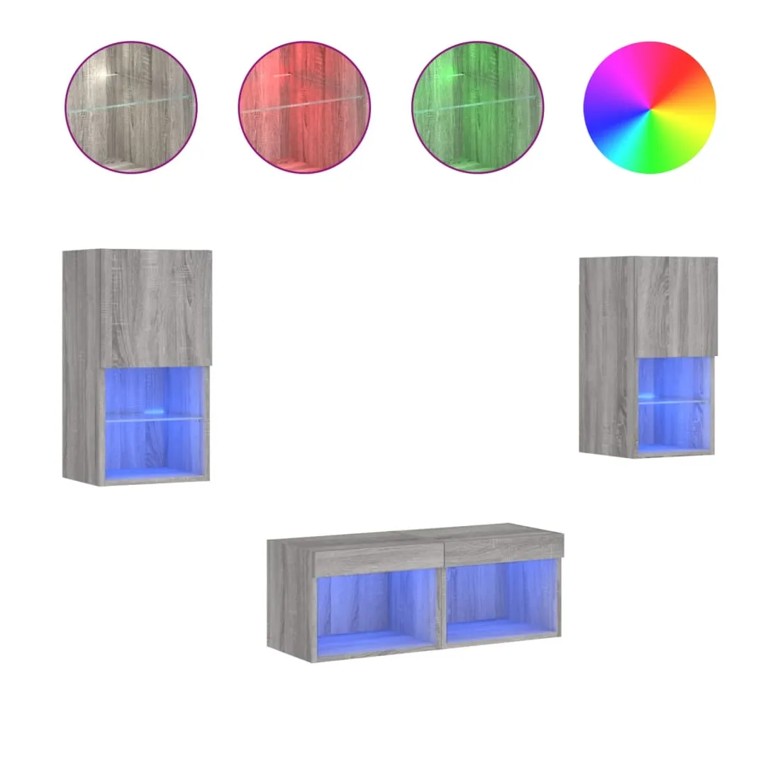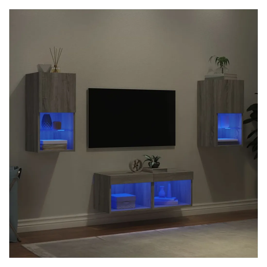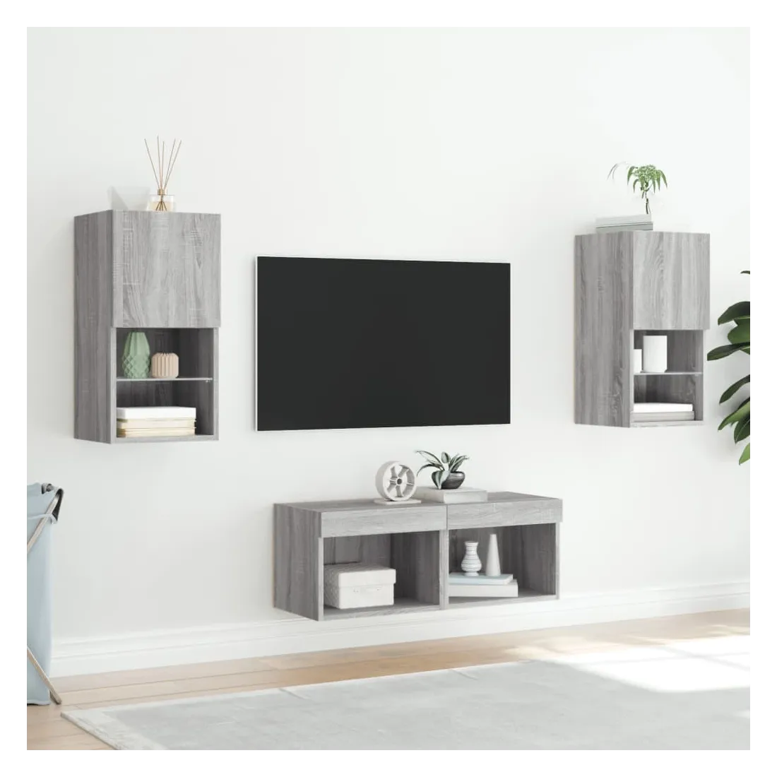 Ces armoires TV murales avec lumières LED sont la solution parfaite pour votre espace de vie afin de maximiser l'espace et de garder les surfaces au sol sans encombrement. Matériau durable : le bois d'ingénierie est d'une qualité exceptionnelle avec une surface lisse et présente également résistance, stabilité et résistance à l'humidité. Fabriqués en bois d'ingénierie, ces meubles TV flottants sont robustes et durables.Grand espace de rangement : les meubles TV muraux disposent d'un grand espace de rangement pour placer vos lecteurs DVD, livres, magazines ou autres objets décoratifs.Lumières LED RVB : les unités multimédia murales sont équipées d'éclairages LED RVB. Avec divers menus personnalisables, vous pouvez changer sans effort la couleur des lumières et même les régler automatiquement.Design mural : ces meubles TV avec rangement peuvent être fixés au mur pour ajouter de l'espace de stockage supplémentaire. De cette façon, vous pouvez maximiser votre espace au sol et garder la zone propre. Bon à savoir :Les vis et les chevilles pour l'intérieur du mur ne sont pas incluses. Nous vous conseillons de trouver et d'utiliser des vis et des chevilles adaptées spécifiquement à vos murs. Si vous n'êtes pas sûr, vous pouvez consulter un professionnel. Veuillez lire et suivre chaque étape des instructions.Ce produit est doté d'un connecteur USB qui nécessite une source d'alimentation USB de 5V certifiée (non incluse).
