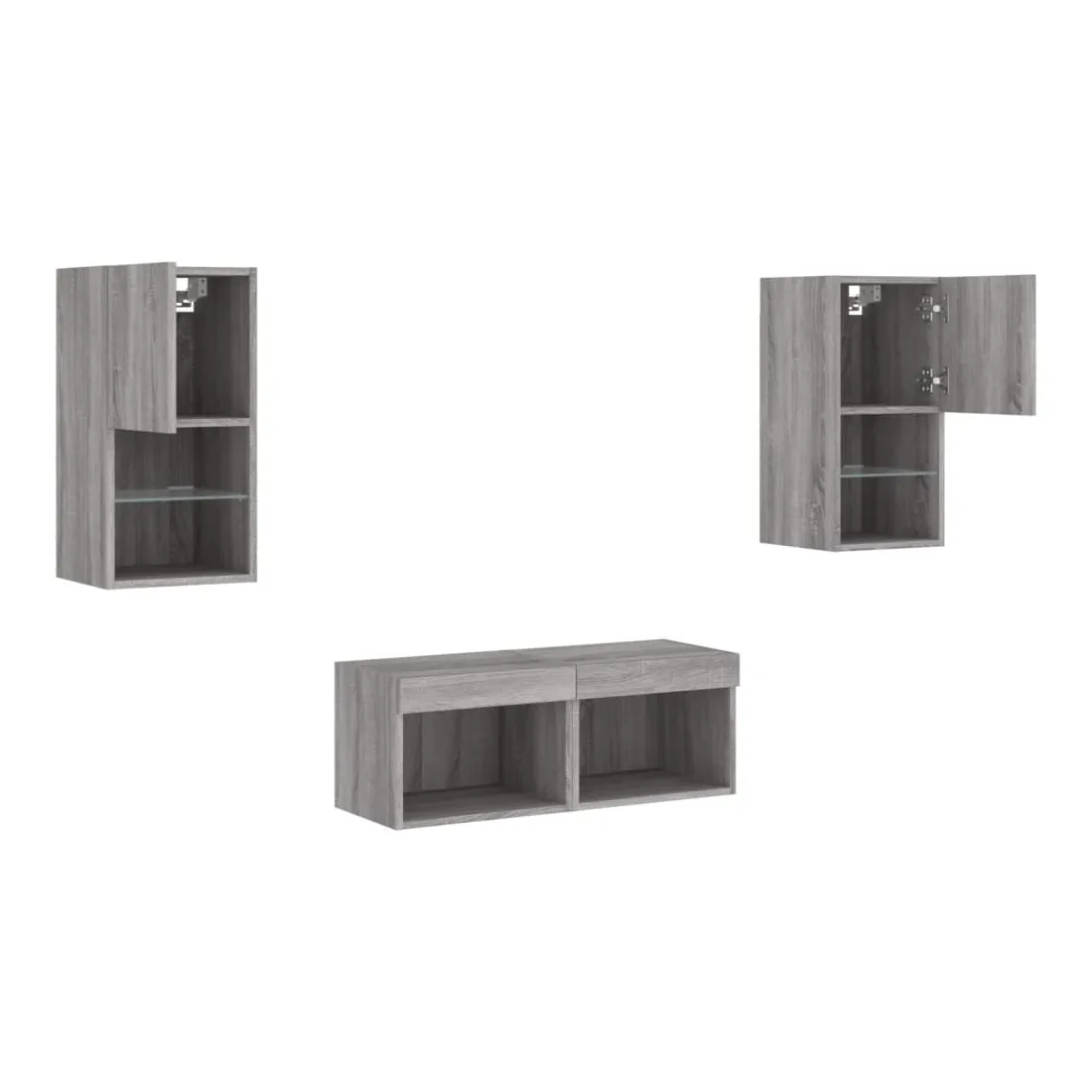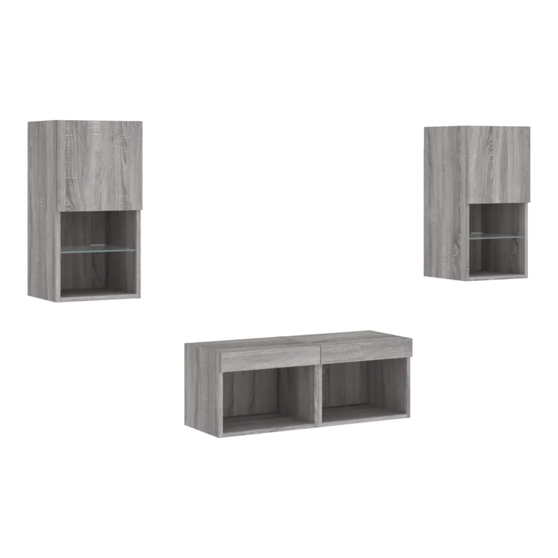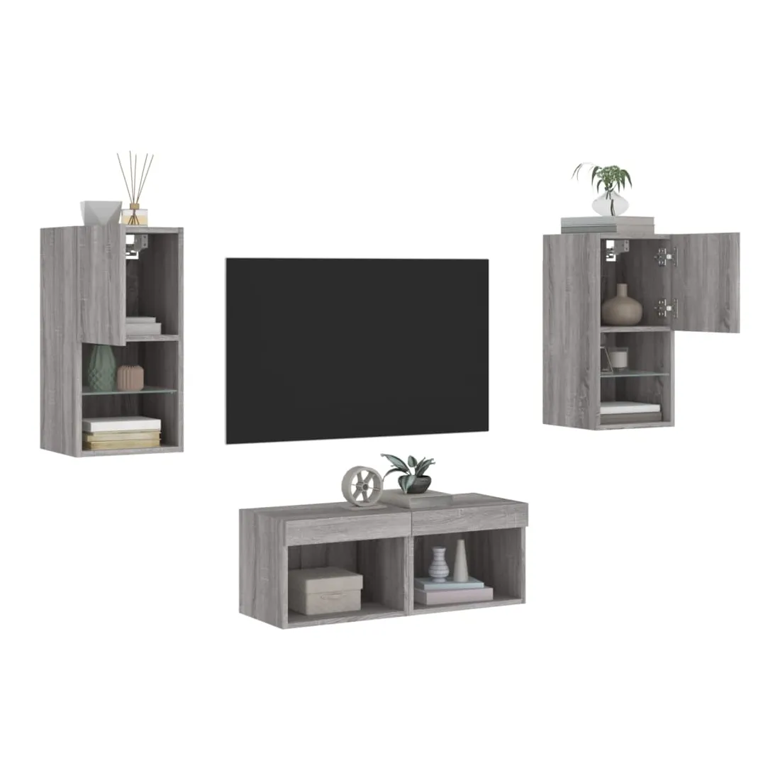 Ces armoires TV murales avec lumières LED sont la solution parfaite pour votre espace de vie afin de maximiser l'espace et de garder les surfaces au sol sans encombrement. Matériau durable : le bois d'ingénierie est d'une qualité exceptionnelle avec une surface lisse et présente également résistance, stabilité et résistance à l'humidité. Fabriqués en bois d'ingénierie, ces meubles TV flottants sont robustes et durables.Grand espace de rangement : les meubles TV muraux disposent d'un grand espace de rangement pour placer vos lecteurs DVD, livres, magazines ou autres objets décoratifs.Lumières LED RVB : les unités multimédia murales sont équipées d'éclairages LED RVB. Avec divers menus personnalisables, vous pouvez changer sans effort la couleur des lumières et même les régler automatiquement.Design mural : ces meubles TV avec rangement peuvent être fixés au mur pour ajouter de l'espace de stockage supplémentaire. De cette façon, vous pouvez maximiser votre espace au sol et garder la zone propre. Bon à savoir :Les vis et les chevilles pour l'intérieur du mur ne sont pas incluses. Nous vous conseillons de trouver et d'utiliser des vis et des chevilles adaptées spécifiquement à vos murs. Si vous n'êtes pas sûr, vous pouvez consulter un professionnel. Veuillez lire et suivre chaque étape des instructions.Ce produit est doté d'un connecteur USB qui nécessite une source d'alimentation USB de 5V certifiée (non incluse).