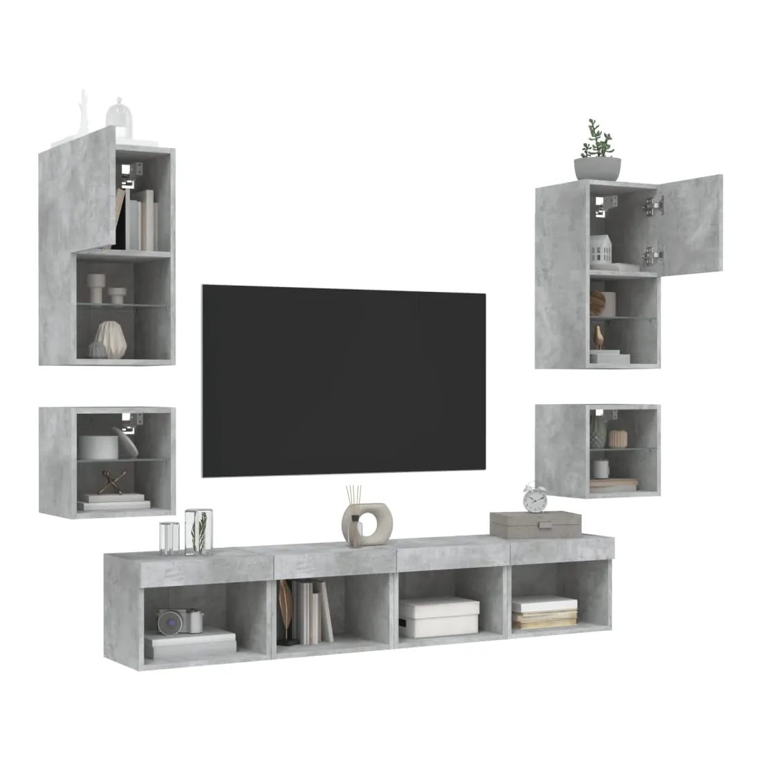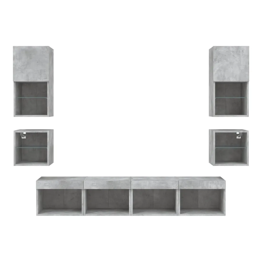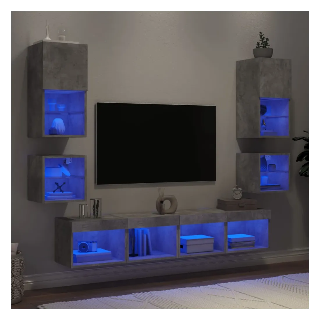 Unités murales TV avec LED 8 pcs gris béton bois d'ingénierie