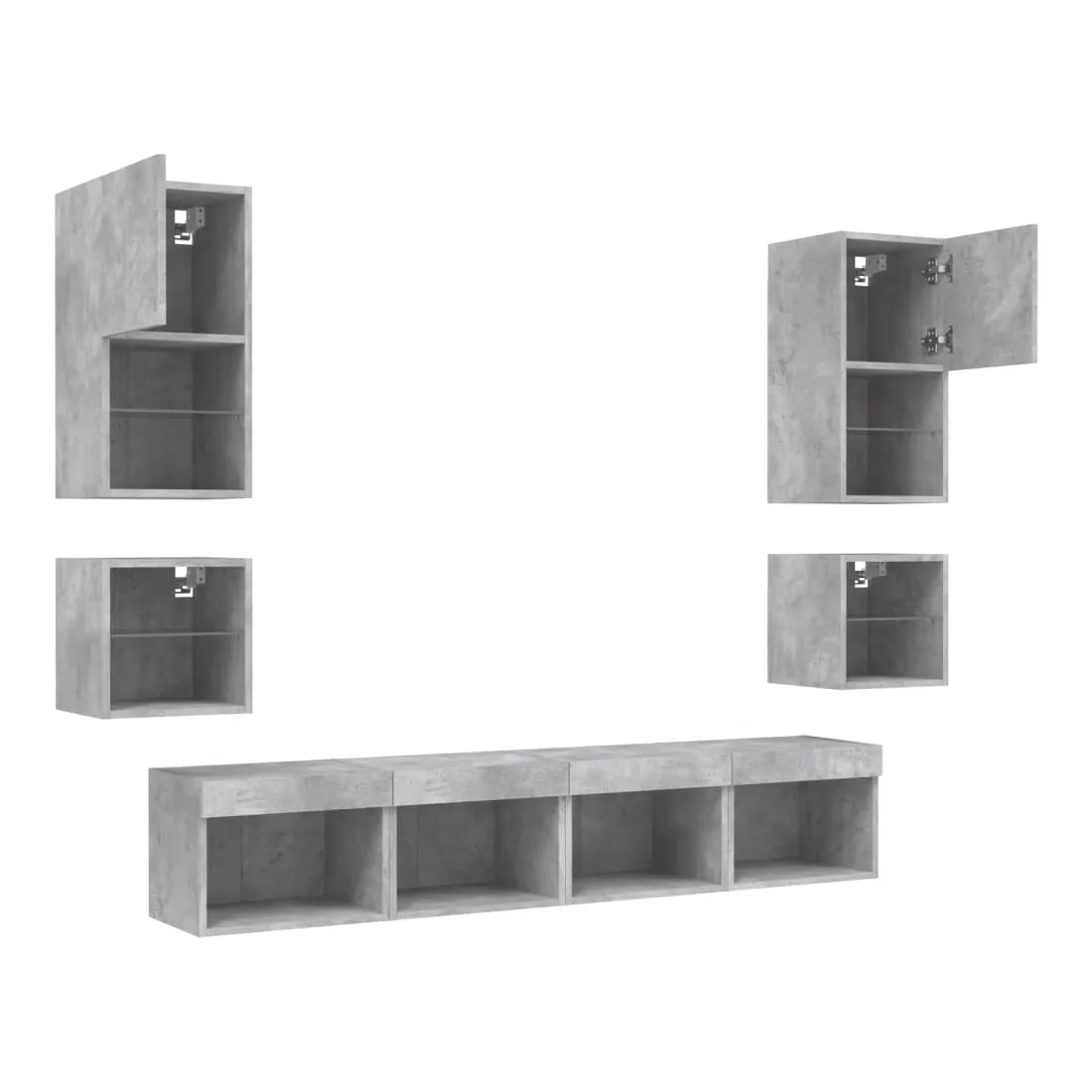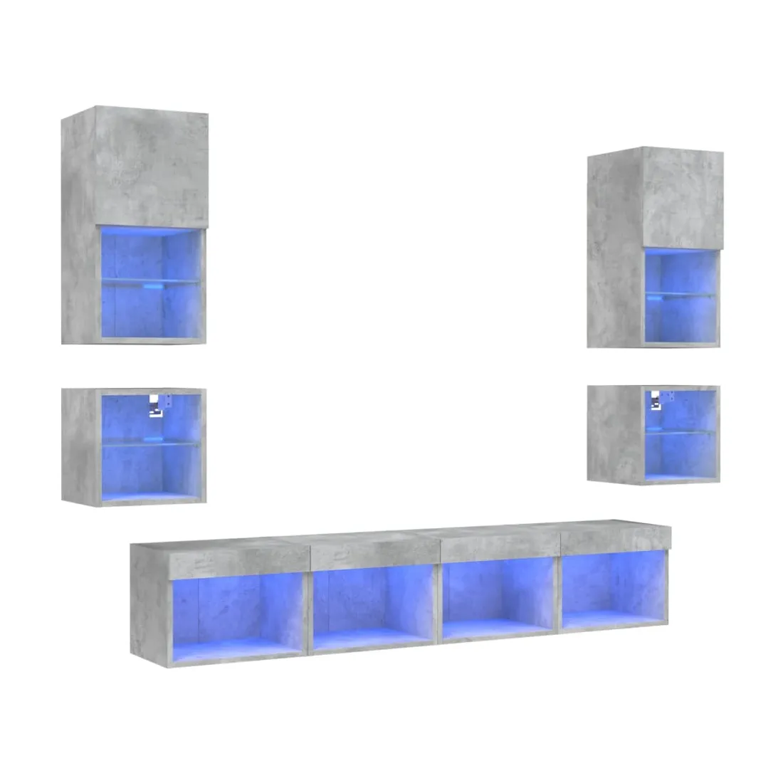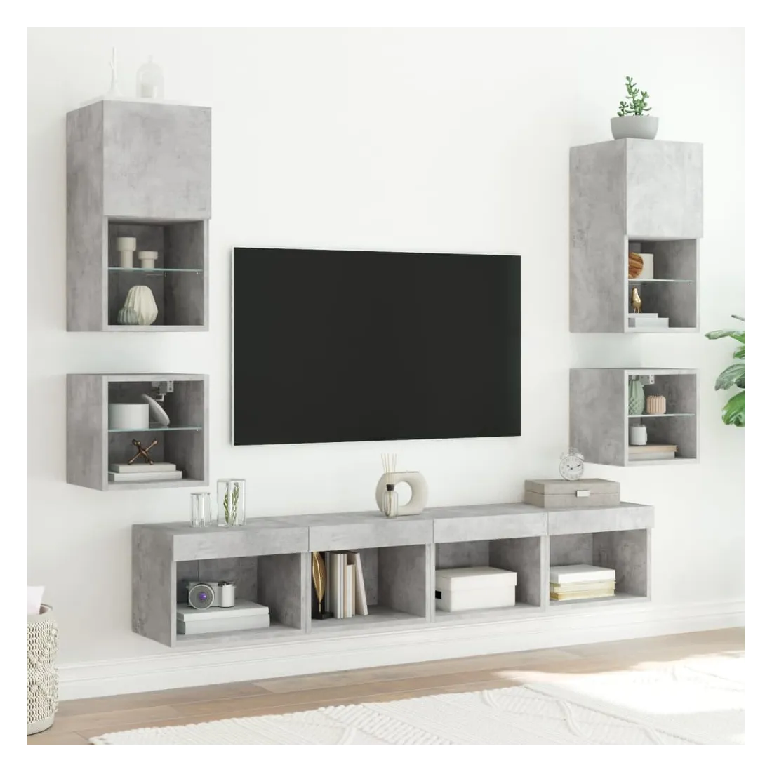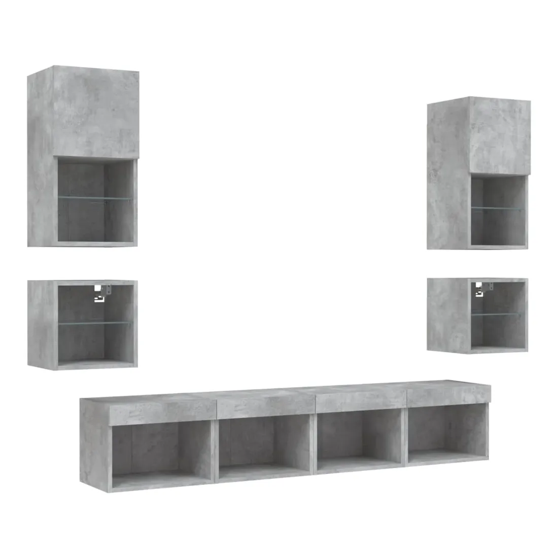 Unités murales TV avec LED 8 pcs gris béton bois d'ingénierie