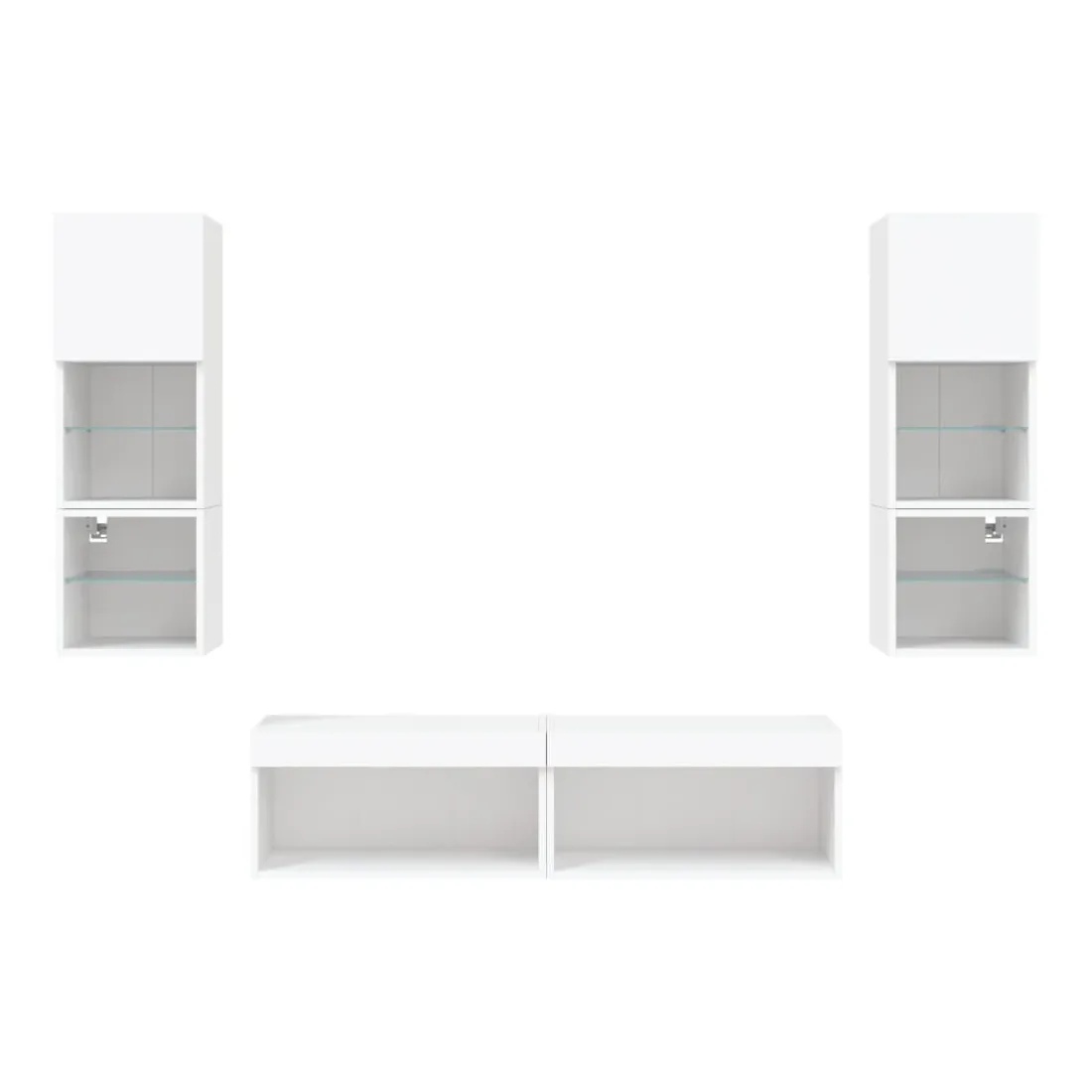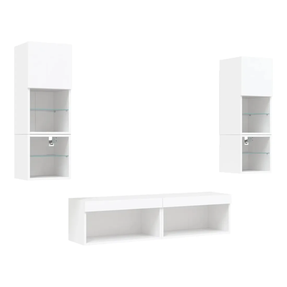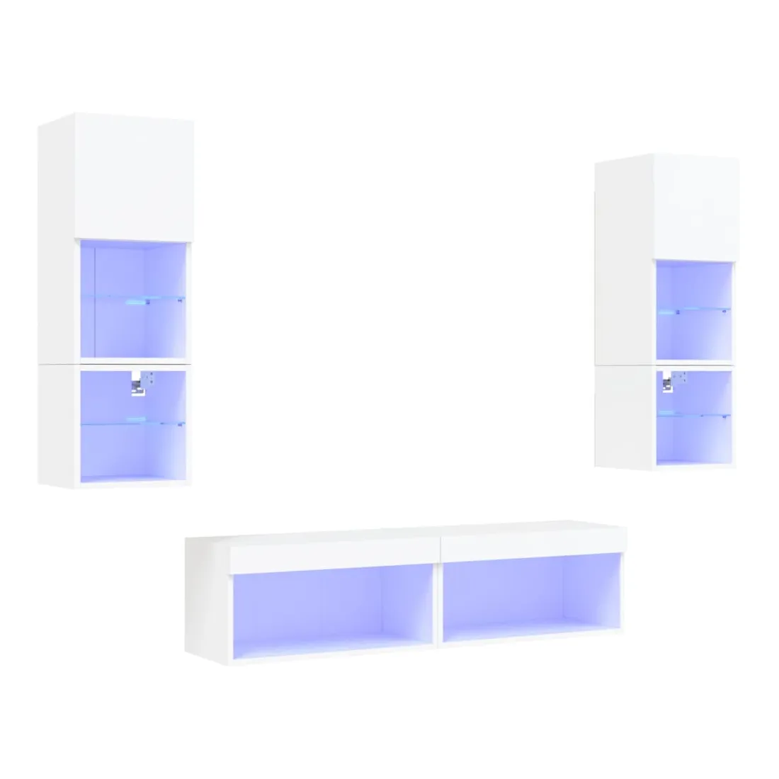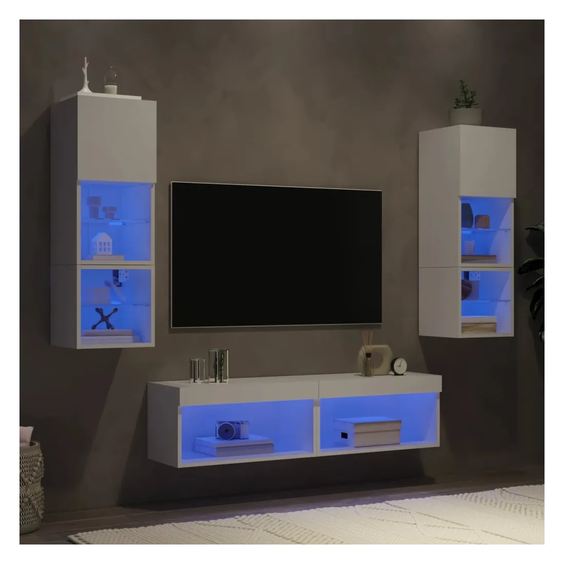 Unités murales TV avec LED 6 pcs blanc bois d'ingénierie