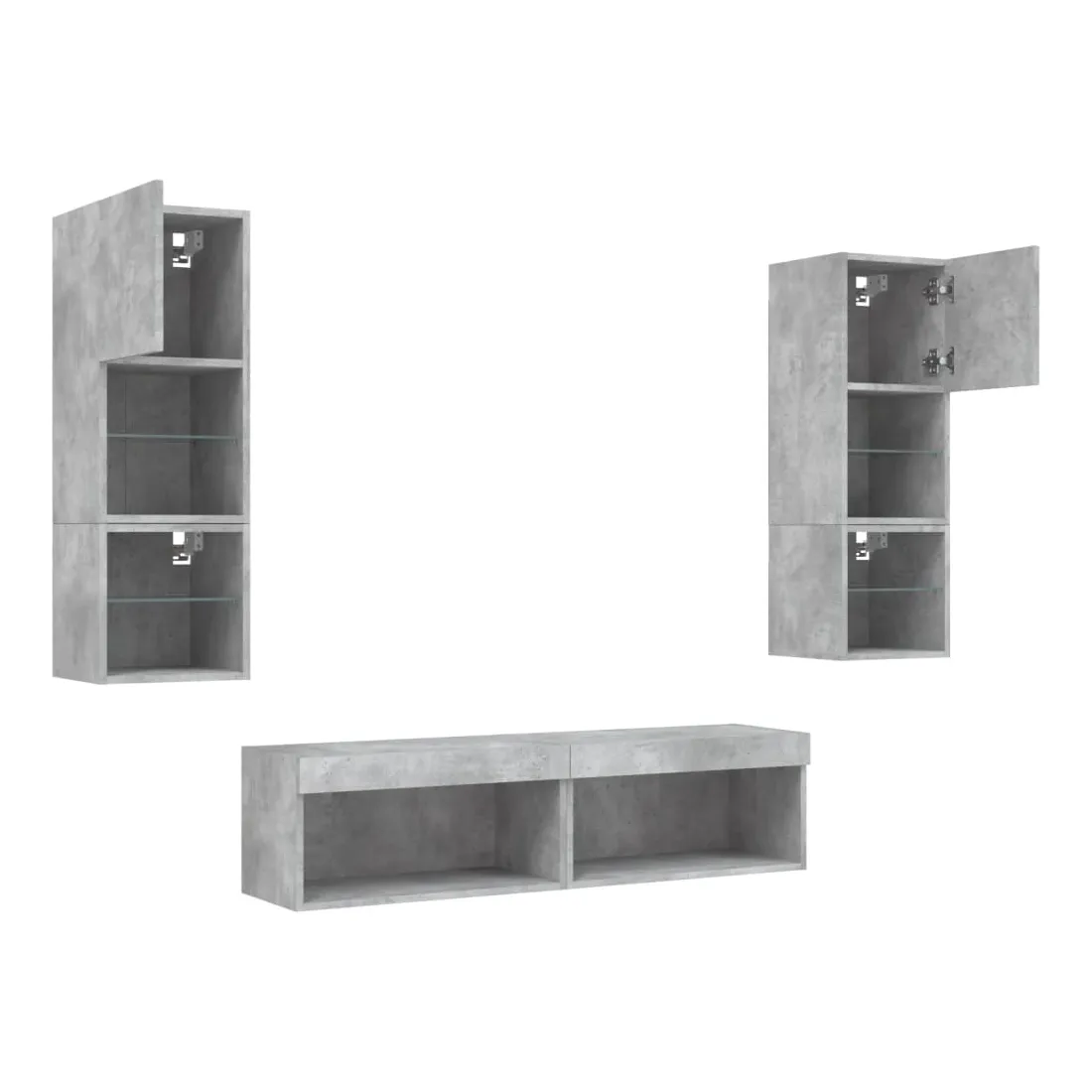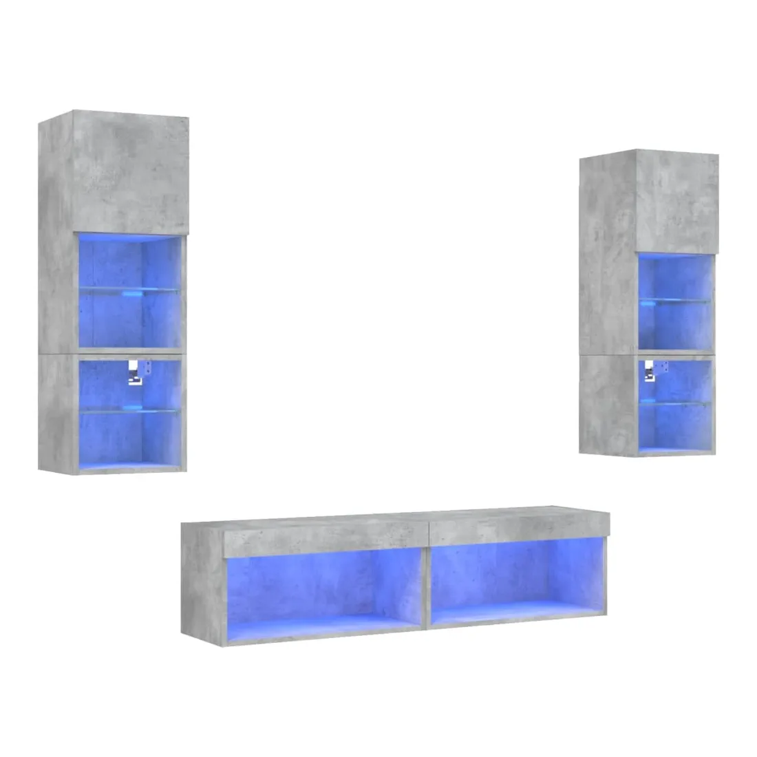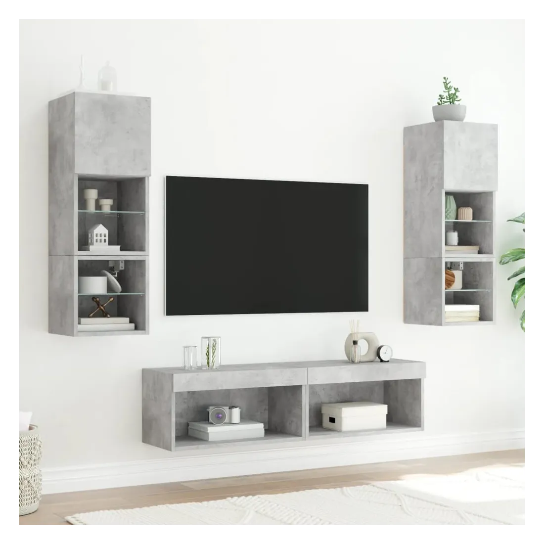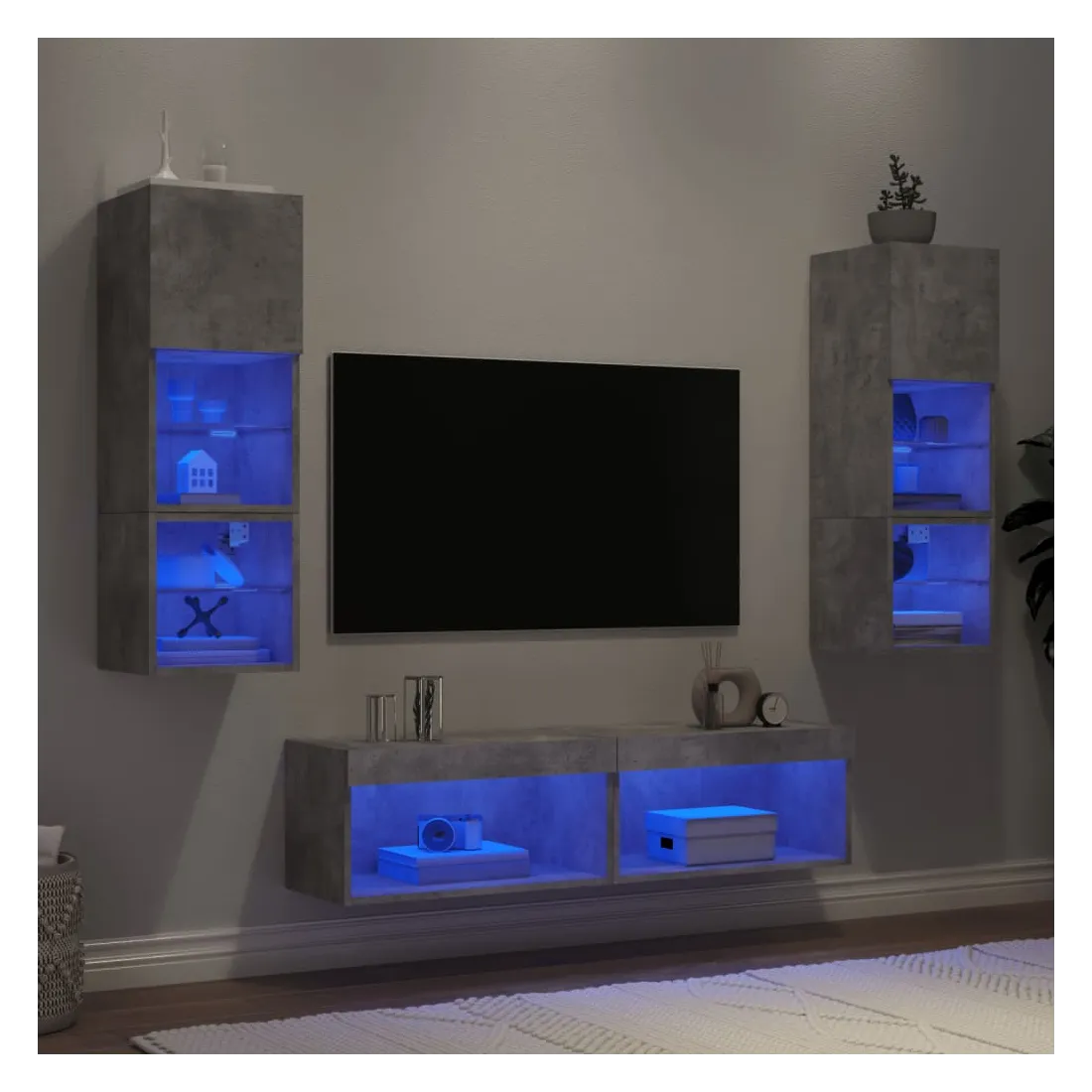 Unités murales TV avec LED 6 pcs gris béton bois d'ingénierie