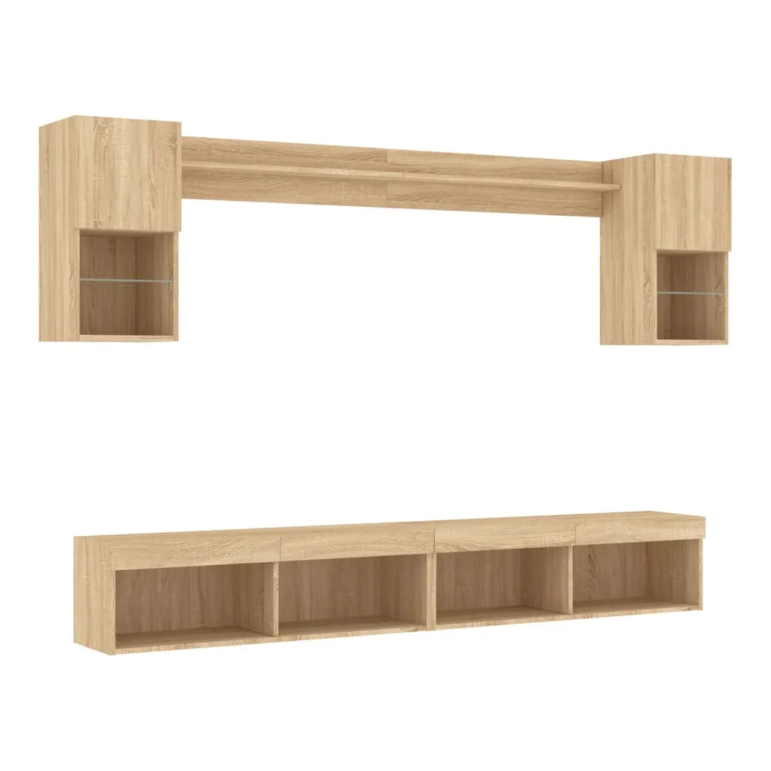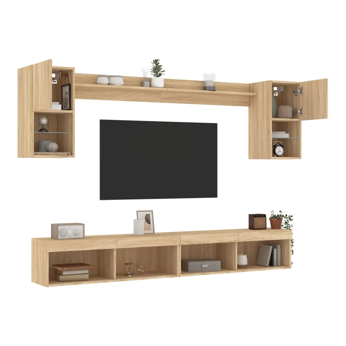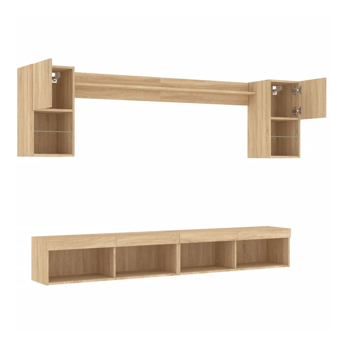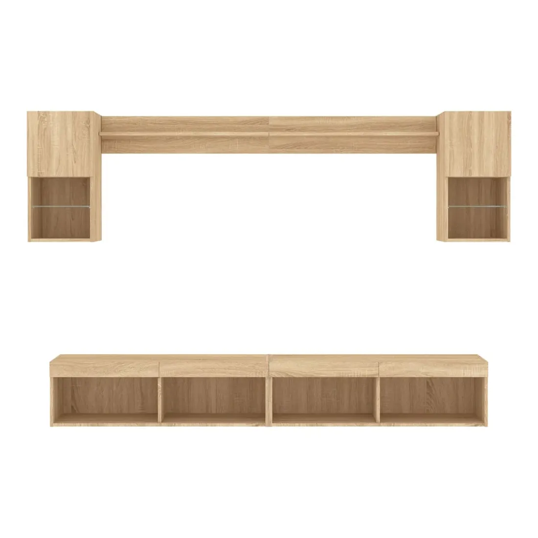 Ces unités murales TV sont la solution parfaite pour votre espace de vie afin de maximiser l'espace et de garder les surfaces au sol sans encombrement. Matériau robuste : le bois d'ingénierie est d'une qualité exceptionnelle avec une surface lisse et présente également résistance, stabilité et résistance à l'humidité.Lumières LED RVB : la unité TV est équipée de lumières LED RVB vibrantes. Avec divers menus personnalisables, vous pouvez changer sans effort la couleur des lumières et même les régler automatiquement. Ces lumières LED renforcent non seulement l'aspect contemporain du meuble TV flottant, mais aussi son attrait pour la mode.Design mural : le meuble de télévision peut être fixé au mur pour ajouter un espace de stockage supplémentaire. De cette façon, vous pouvez maximiser votre espace au sol et garder la zone propre.Grand espace de rangement : le meuble TV flottant est doté de différentes options de rangement, offrant ainsi un grand espace pour ranger vos objets quotidiens tels que les livres, les DVD, les accessoires multimédias et d'autres articles bien organisés et à portée de main.Design polyvalent : vous pouvez l'utiliser comme meuble TV ou le monter sur le mur du lieu de travail pour un rangement pratique des outils ou d'autres articles divers. De plus, il transforme un mur vide en un élément de décoration. Bon à savoir :Les vis et les chevilles pour l'intérieur du mur ne sont pas incluses. Nous vous conseillons de trouver et d'utiliser des vis et des chevilles adaptées spécifiquement à vos murs. Si vous n'êtes pas sûr, vous pouvez consulter un professionnel. Veuillez lire et suivre chaque étape des instructions.Ce produit est doté d'un connecteur USB qui nécessite une source d'alimentation USB de 5V certifiée (non incluse).