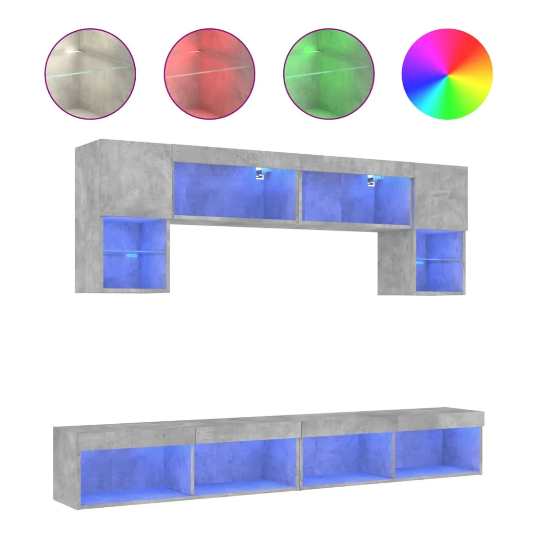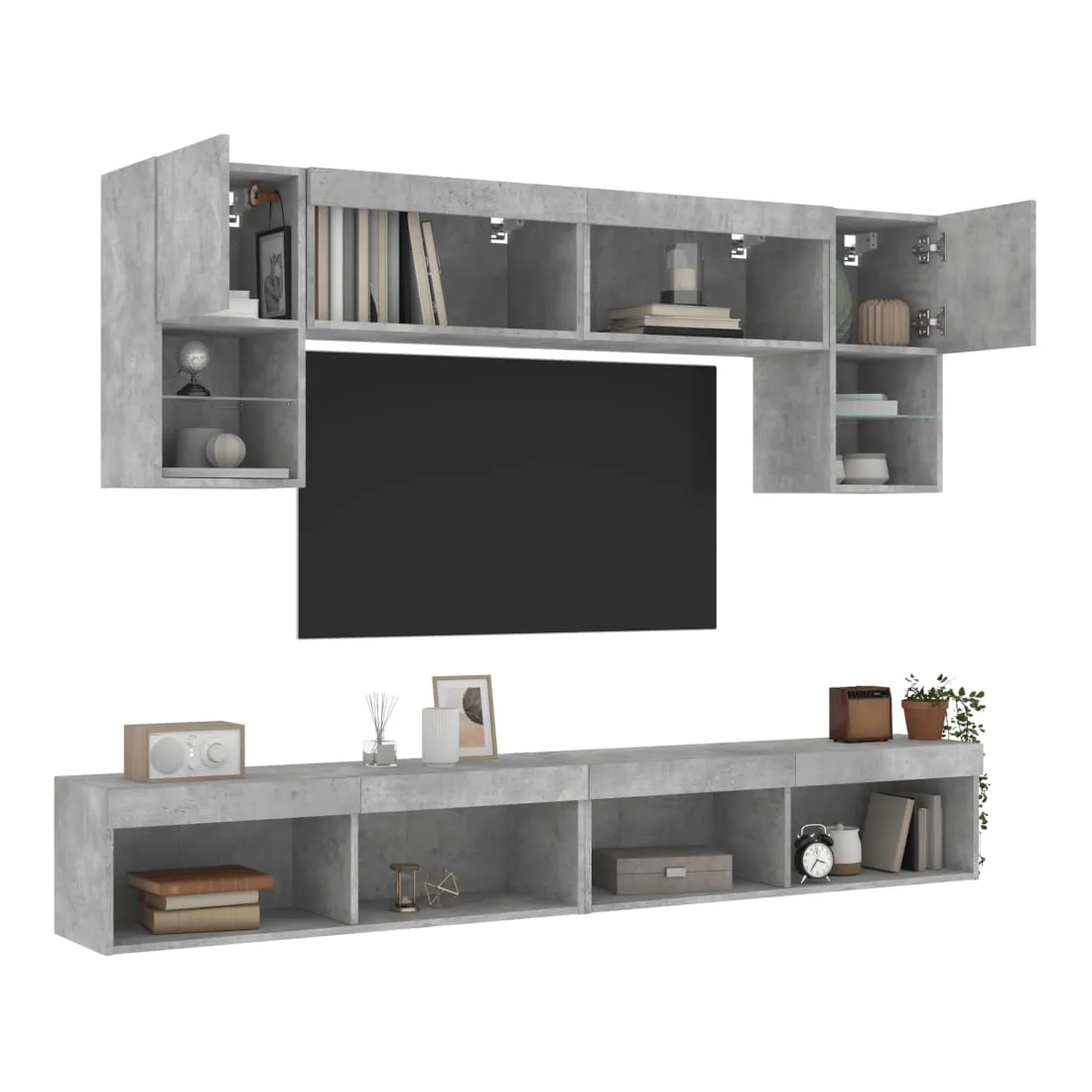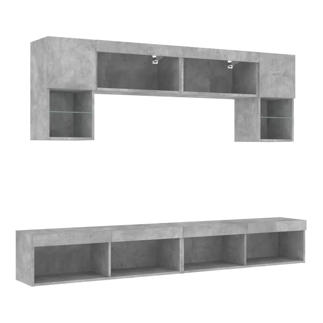 Unités murales TV avec LED 6 pcs gris béton bois d'ingénierie