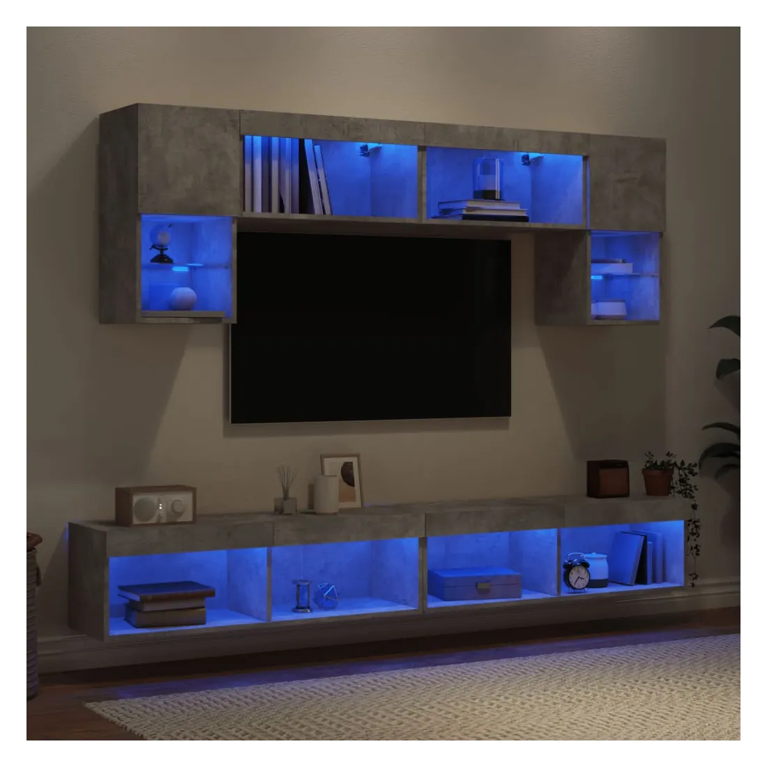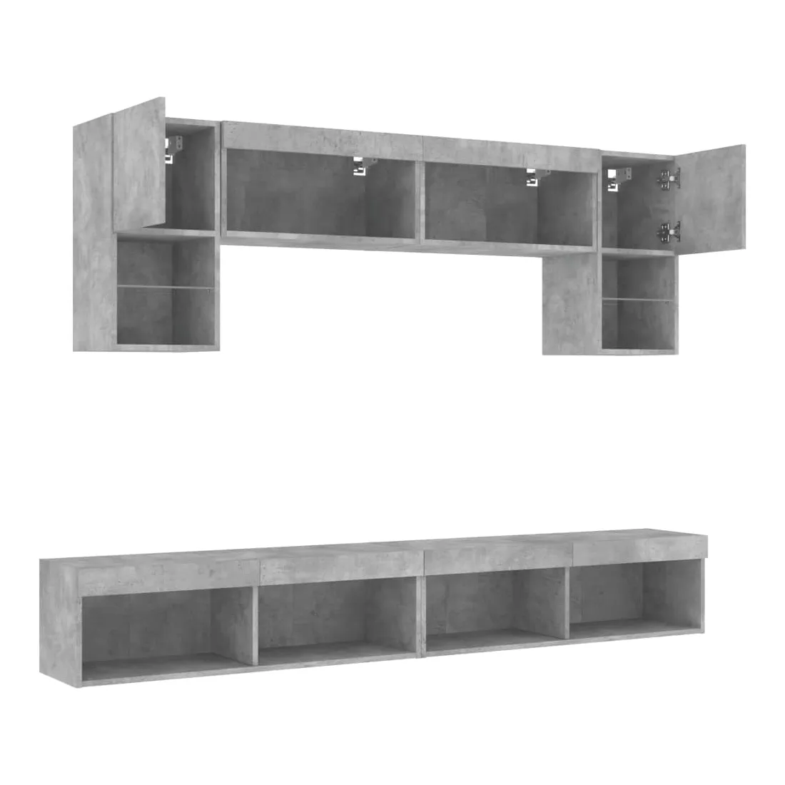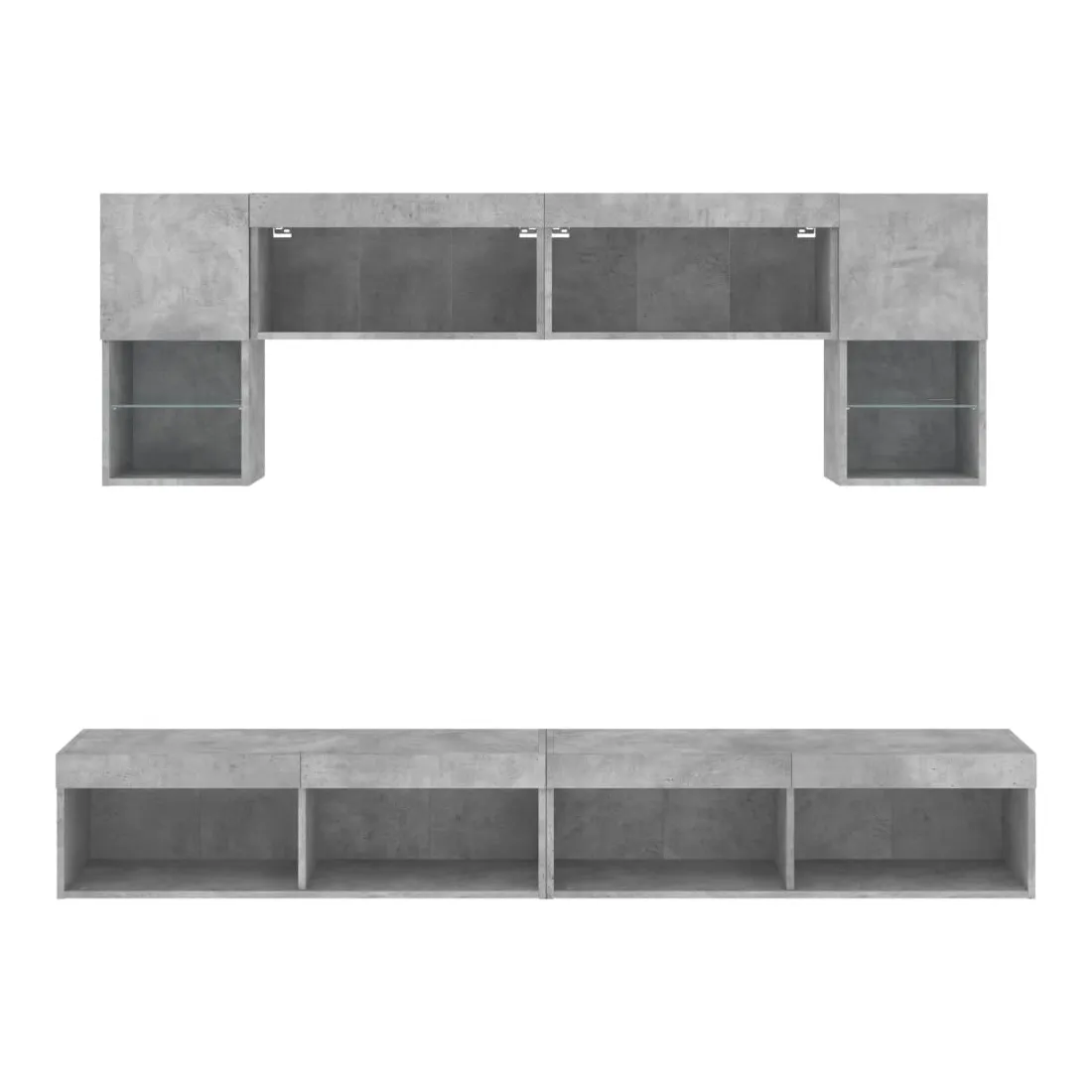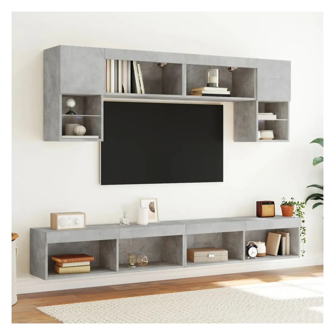 Unités murales TV avec LED 6 pcs gris béton bois d'ingénierie