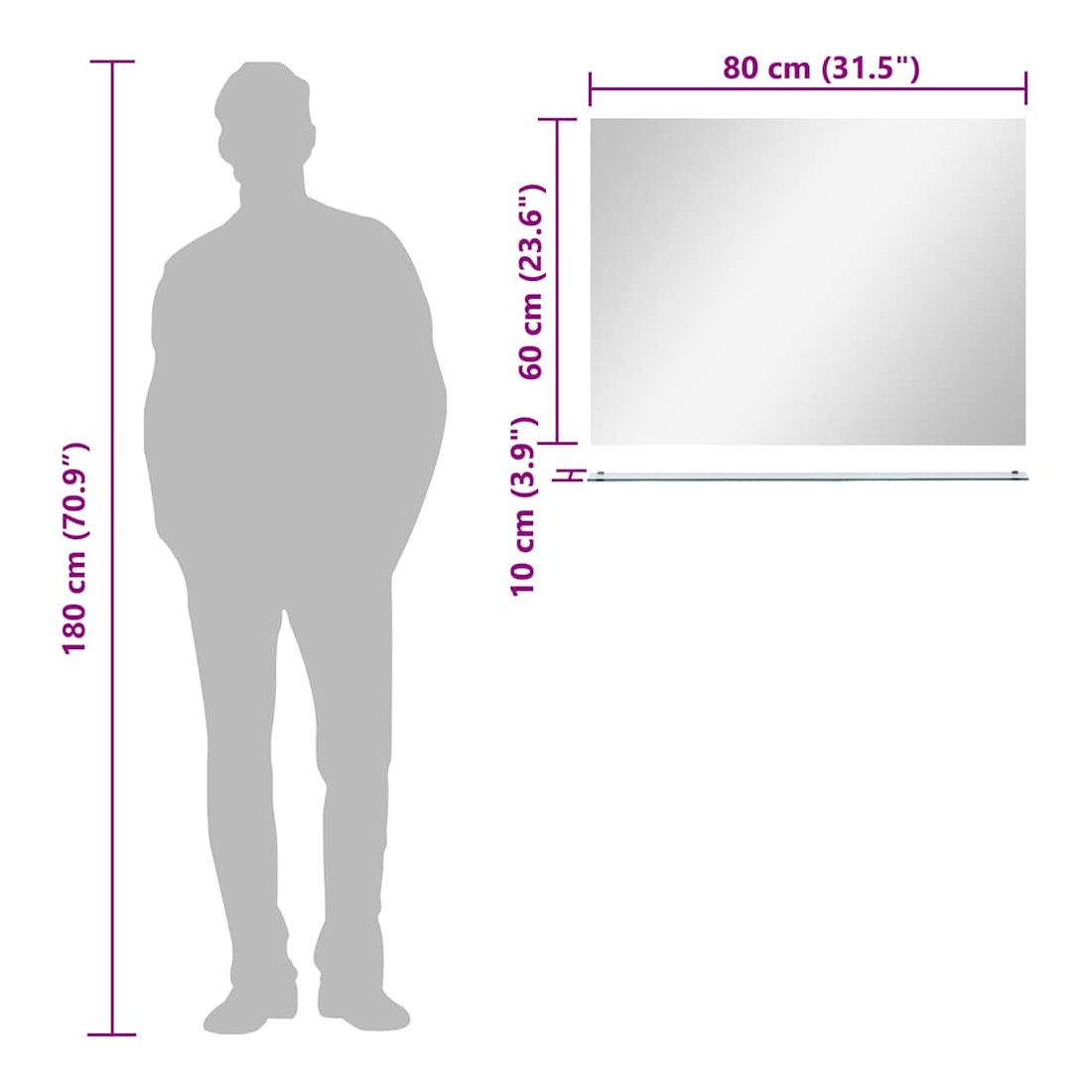 Notre miroir mural avec étagère sera un supplément pratique et décoratif à votre salle de bain, salon ou chambre à coucher. Le mobilier de salle de bain présente un style minimaliste et une étagère en miroir pratique pour afficher des objets décoratifs ou les essentiels du dressing. De conception contemporaine, notre miroir de salle de bain avec étagère est fabriqué en verre trempé, ce qui assure sa durabilité. Le miroir peut être facilement monté sur le mur.
