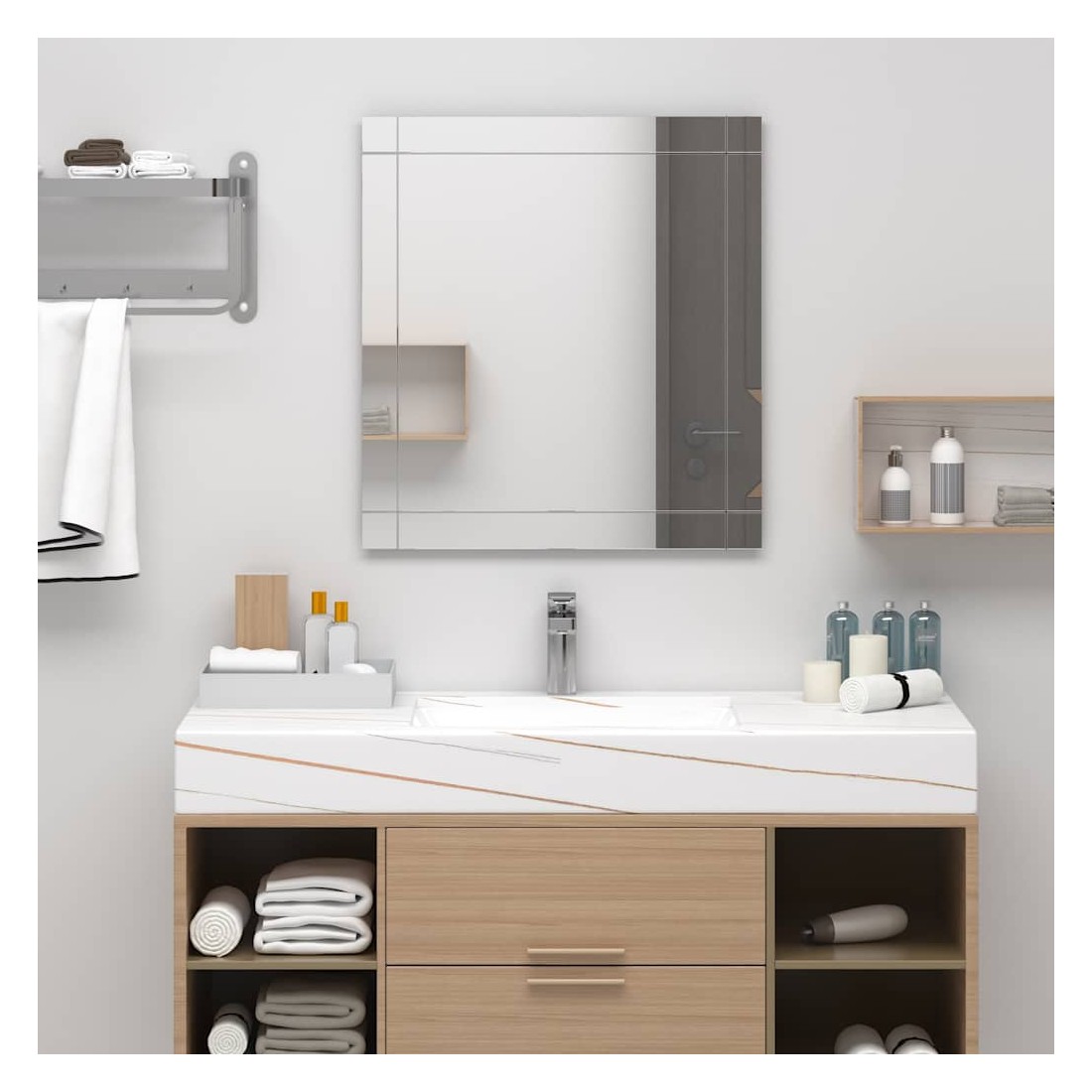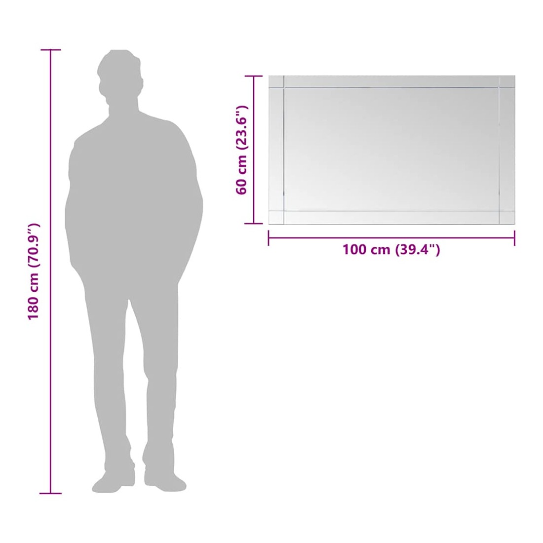 Ajoutez un look moderne à votre décoration intérieure avec notre miroir mural ! Le miroir en verre sert de miroir cosmétique, de miroir de décoration et même de miroir de salle de bain. Grâce à la finition rugueuse, le bord du miroir est sûr et dispose d’un look épuré. Il peut être facilement monté sur le mur.