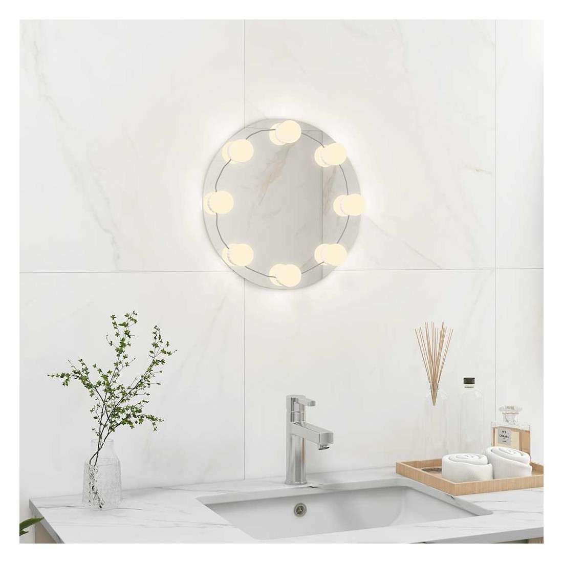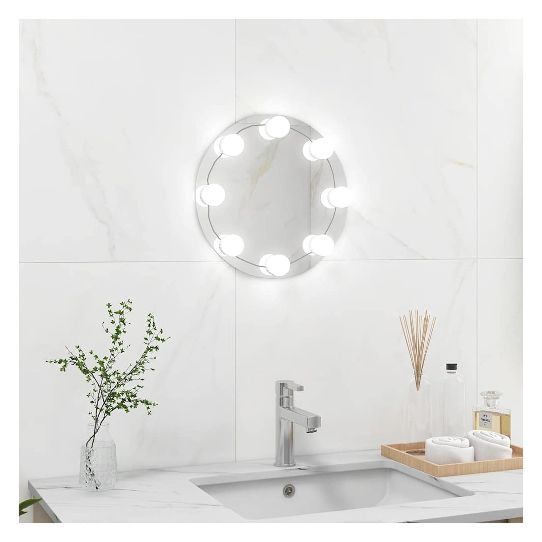 Ajoutez une touche de style contemporain à votre chambre à coucher, salon ou dressing avec ce miroir mural pratique avec lampes LED ! Le bord du miroir est moulu pour lui donner un aspect propre. Vous pouvez également acheter plusieurs miroirs et les disposer dans un motif décoratif. La lampe de miroir de maquillage autocollante dispose de différents modes de couleur pour répondre à vos besoins en fonction de la situation. En raison de la distance libre entre deux lampes, le câble supplémentaire peut être caché en enroulant le fil autour du fond de l'ampoule pour obtenir le meilleur effet de bricolage et garder votre miroir propre et sans couture. Décorée avec ce miroir à LED, votre pièce obtient un aspect spacieux.