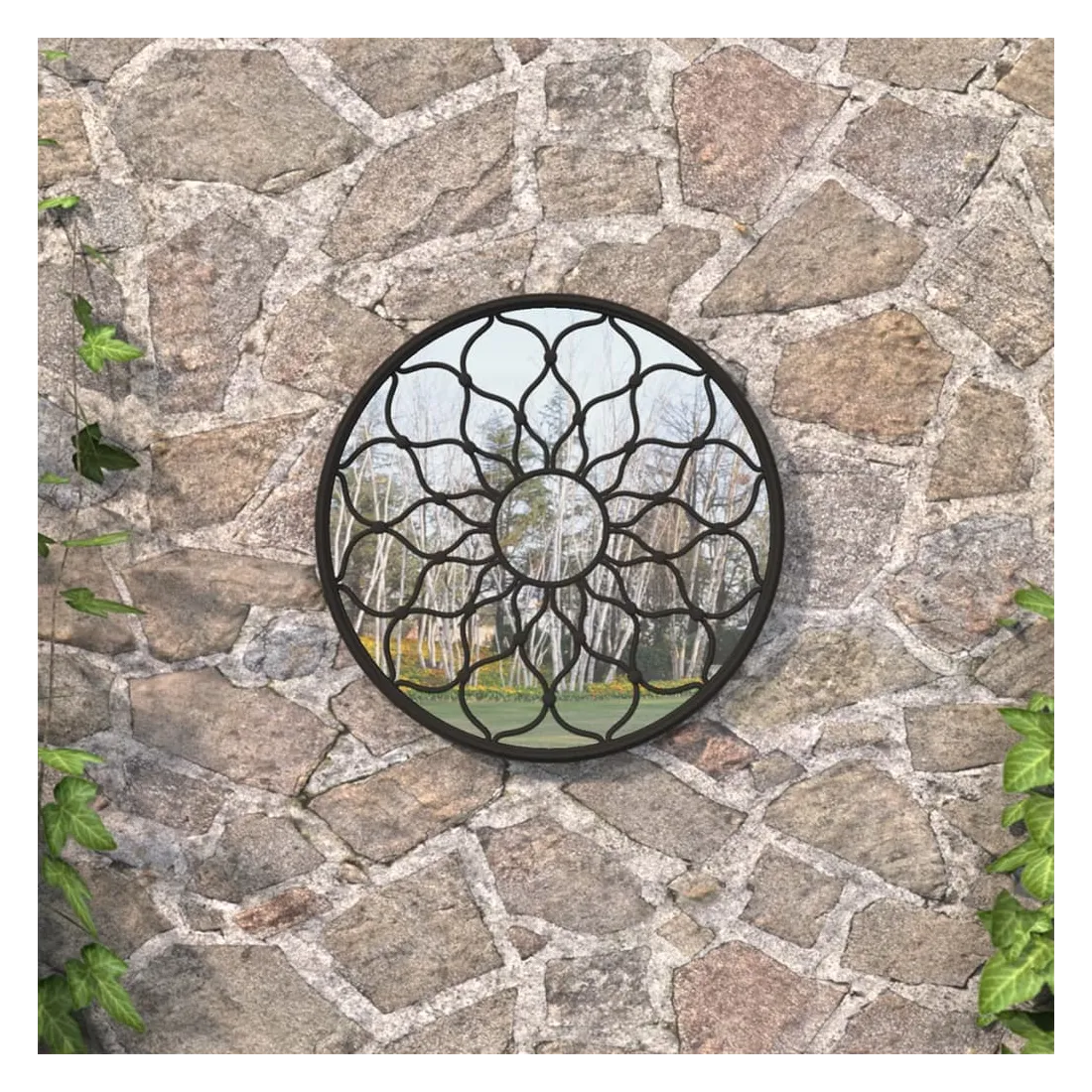Le miroir rond de jardin sera un supplément original et attrayant à l'espace extérieur. Le cadre du miroir est en fer, ce qui le rend durable et stable. Le motif floral décoratif permet de l'utiliser à l'extérieur. Il peut être utilisé pour mettre en valeur un élément du jardin en le reflétant dans le miroir, ou l'utiliser pour dévier la lumière dans un coin sombre. Un miroir dans le jardin est une façon créative d'améliorer l'apparence et de rendre le jardin plus grand. Grâce au trou pré-percé sur son dessus, le miroir décoratif peut être facilement monté sur le mur.