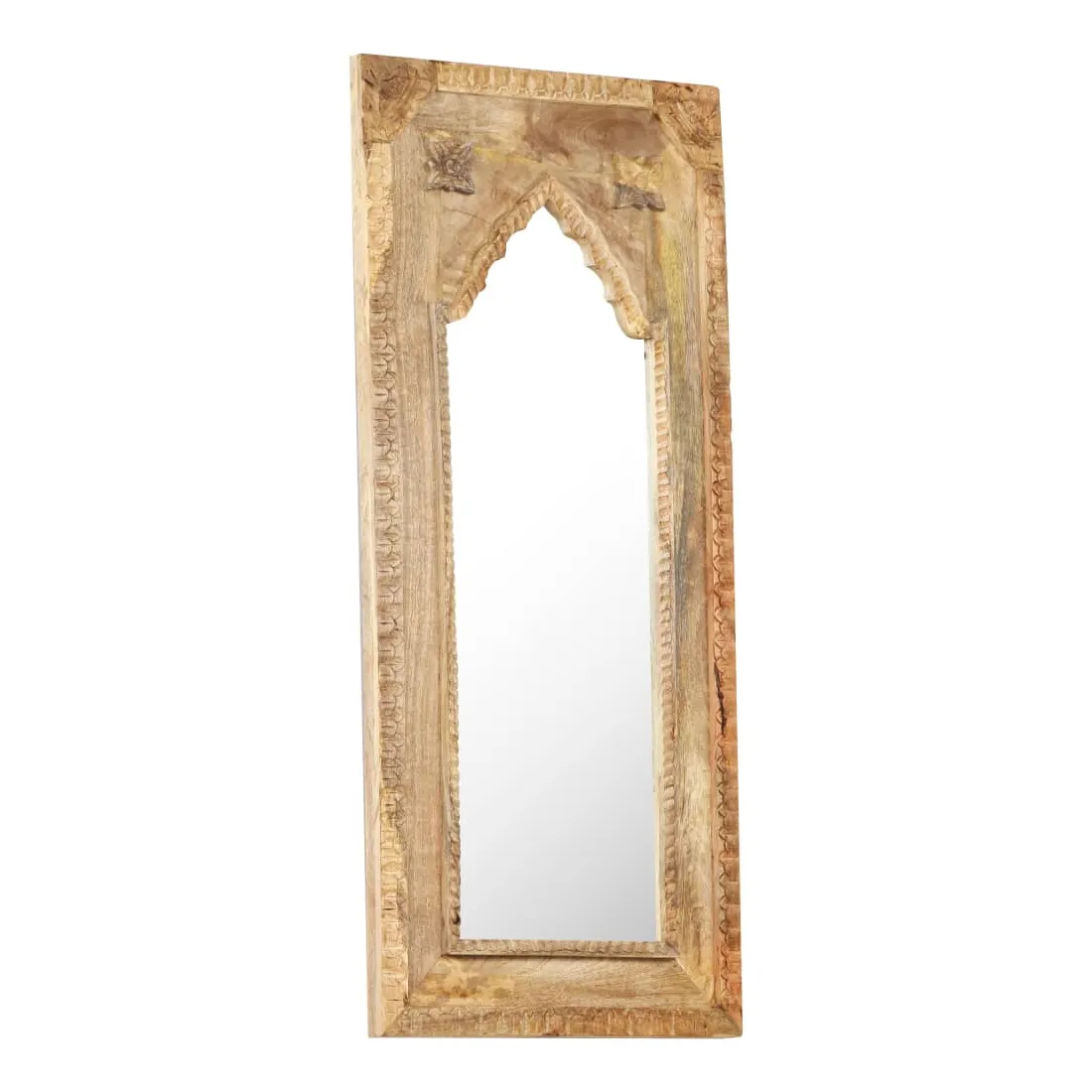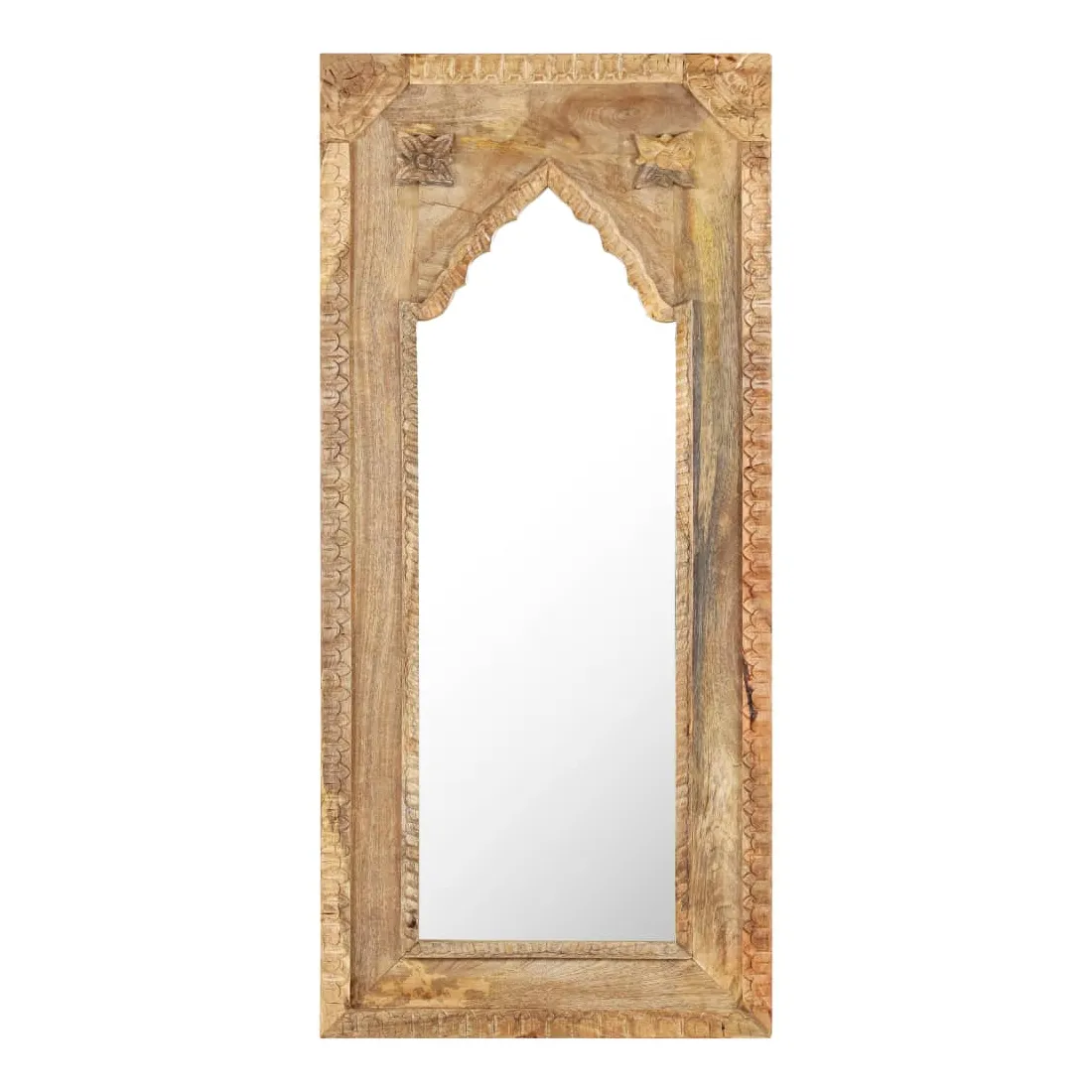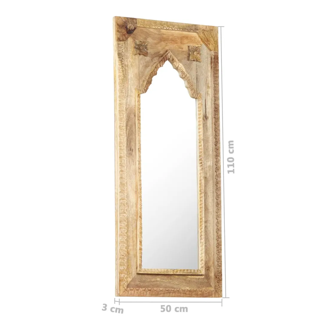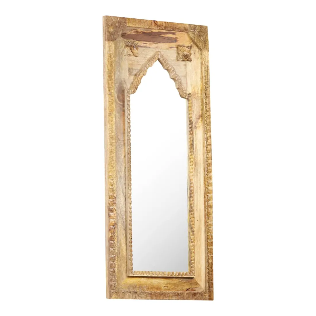 Ce magnifique miroir en bois dégage un charme unique et ajoutera un grand plus à votre maison. Le cadre du miroir est en bois de manguier massif, un bois dur à grains denses. Le bois de manguier massif a non seulement assez de force pour soutenir le poids, mais résiste aussi à l’usure du temps. Le bois a été méticuleusement sculpté à la main, ce qui ajoute encore plus de charme. Le miroir peut être placé dans la salle de bain, la chambre à coucher ou le salon, servant de miroir cosmétique ou de miroir de décoration. Remarque importante : le couleur et les grains de bois peuvent varier d'une pièce à l'autre, ce qui rend chaque pièce unique et légèrement différente l'une de l'autre ; la livraison est aléatoire.