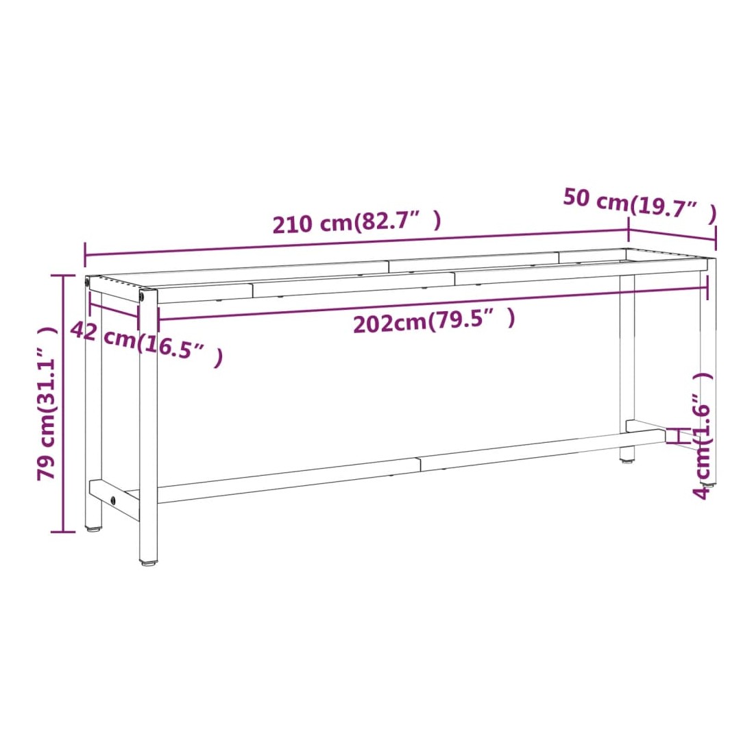 - Dimensions : 210 x 50 x 79 cm (L x l x H)