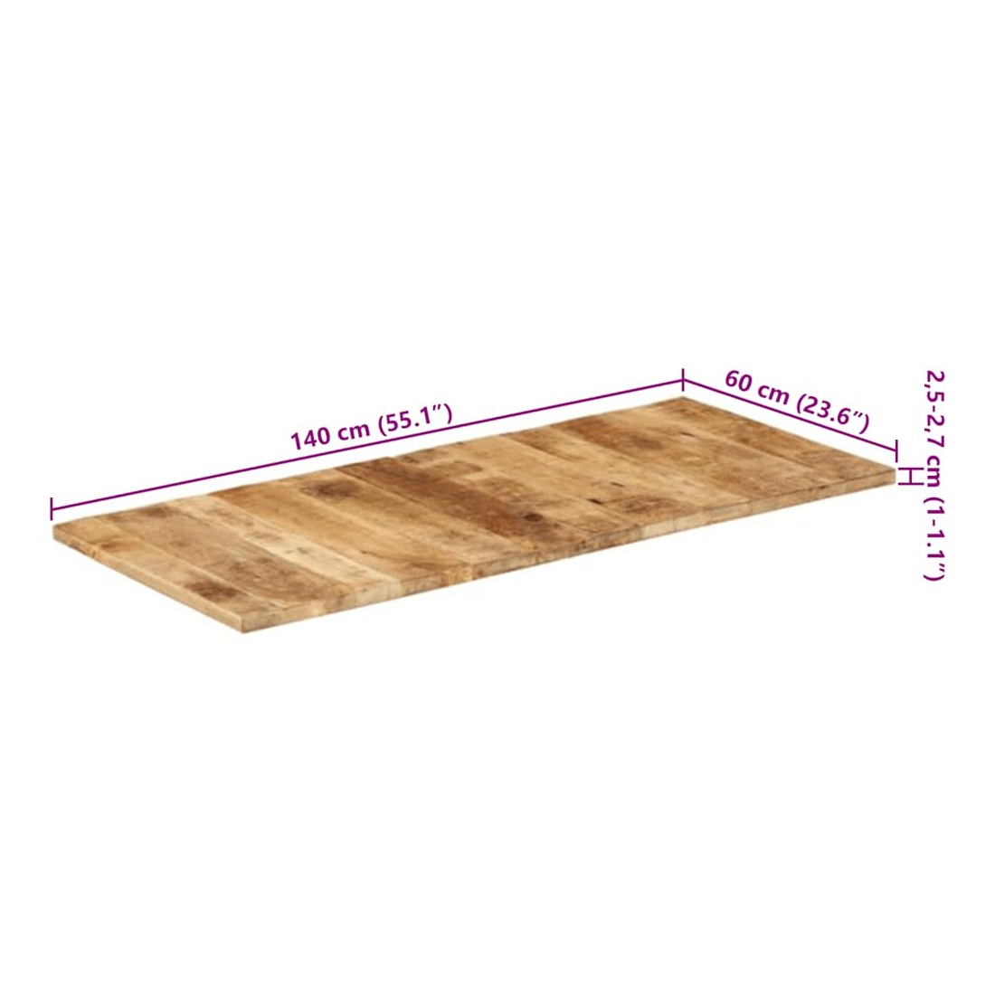 Donnez une nouvelle vie à votre table avec notre dessus de table en bois. Il présente une excellente solution pour renouveler votre table chez vous ou dans un cadre commercial comme un restaurant, un café, un hôtel, etc. Notre dessus de table est fait de bois de manguier massif, qui est un bois dur tropical qui a une finition rugueuse pour un look industriel. Le bois de manguier massif a non seulement la force de supporter le poids, mais résiste également à l'usure du temps. Chaque étape du processus est réalisée avec le plus grand soin, qu'il s'agisse du polissage ou du revêtement. Par conséquent, il est également durable et facile à nettoyer avec un chiffon humide. Avec un look simple et épuré, ce dessus de table ajoutera un charme rustique à vos salles à manger. De plus, vous pouvez combiner ce dessus de table avec n'importe quel type de pied stylé en fonction de vos besoins spécifiques. Remarque importante : les couleurs varient d'un meuble à l'autre, rendant chacune de nos tables basses unique, la livraison est aléatoire.