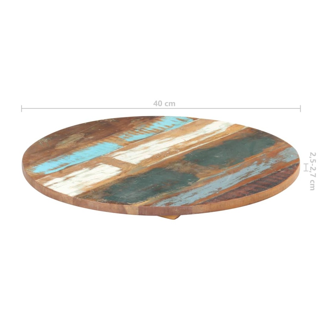 Ce dessus en bois, avec un look simple et épuré, ajoute un charme rustique à vos espaces intérieurs. Sa construction en bois massif le rend stable et sécurisé. Le dessus de table de remplacement, fabriqué en bois massif de récupération tropical, est fabriqué à partir de bois récupéré provenant d'anciennes structures telles que des entrepôts, des granges, des remises, des usines et des manoirs. Le bois est un mélange de bois de manguier, de bois franc, de teck, etc., avec les caractéristiques de différents bois. Les signes d'usure et la structure de grain visible donnent à chaque pièce sa propre histoire et un look unique. Chaque étape du processus est réalisée avec un soin exceptionnel, qu'il s'agisse du polissage, de la peinture ou du laquage. De plus, ce dessus de table en bois massif peut être utilisé pour les tables basses, les tables d'appoint, les tables de bar, les tables pour téléphone, les tables consoles, les tables de chevet, les étagères ou comme planche de meubles. Vous pouvez également combiner ce dessus de table avec n'importe quel pied stylisé selon vos besoins spécifiques. Le dessus de table est facile à nettoyer avec un chiffon humide. Remarque importante : les couleurs varient d'une pièce à l'autre, rendant chaque pièce unique. La livraison est aléatoire, garantissant l'exclusivité et l'individualité de votre produit.