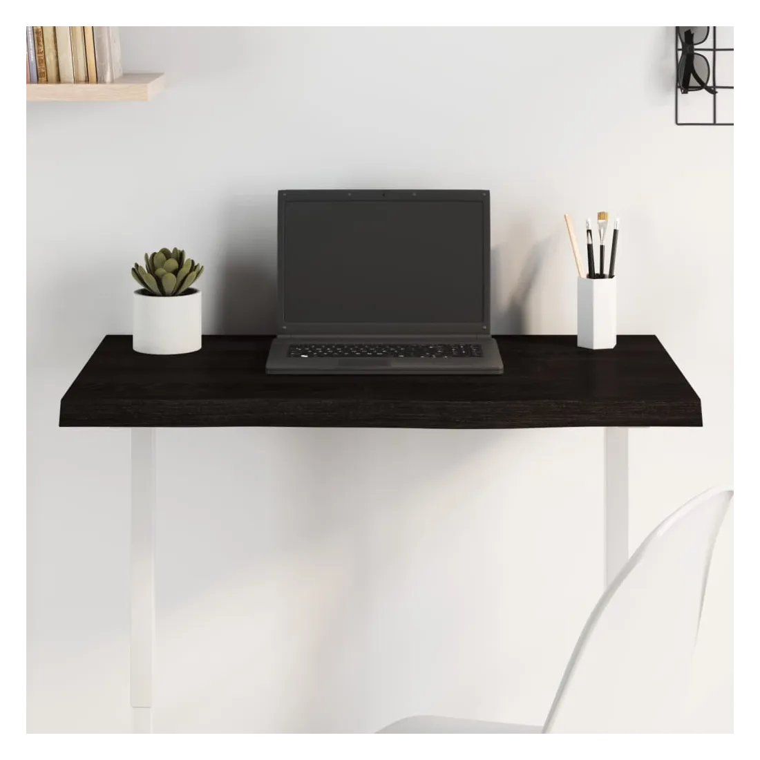 Donnez une nouvelle vie à votre table avec ce dessus de table en bois. C'est une excellente solution pour renouveler votre table à la maison ou dans un cadre commercial. Bois de chêne massif : le dessus de table est en bois de chêne massif, un matériau naturel d'une grande beauté. Le bois de chêne a une couleur marron moyen et un grain dense, ce qui contribue à son aspect unique.Applications polyvalentes : le dessus de table de remplacement peut être combiné avec différentes bases en fonction de vos besoins.Surface traitée : la planche de remplacement a été traitée avec une peinture foncée, elle est donc prête à l'emploi car une finition supplémentaire n'est pas nécessaire.Fabriqué à la main avec un bord vif : le tableau de bricolage est méticuleusement fabriqué à la main et présente un bord vivant qui ajoute à son charme naturel. Chaque pièce de l'étagère présente un caractère unique. La livraison est aléatoire, ce qui garantit l'exclusivité et l'individualité de votre produit. Bon à savoir :En tant que produit naturel, le bois peut présenter des nœuds et des imperfections que nous remplissons avec des garnitures noires pour garantir un aspect lisse.