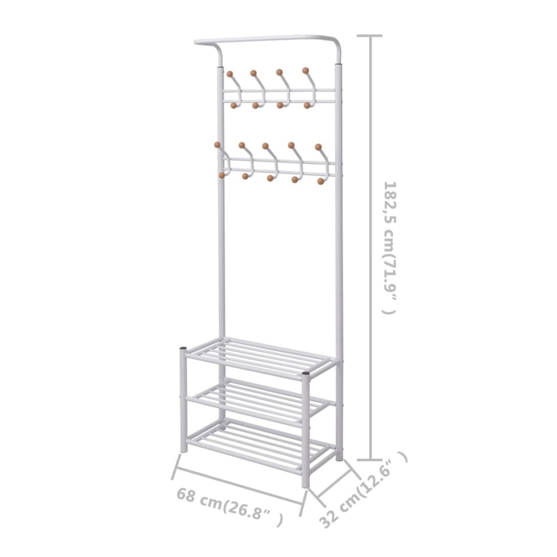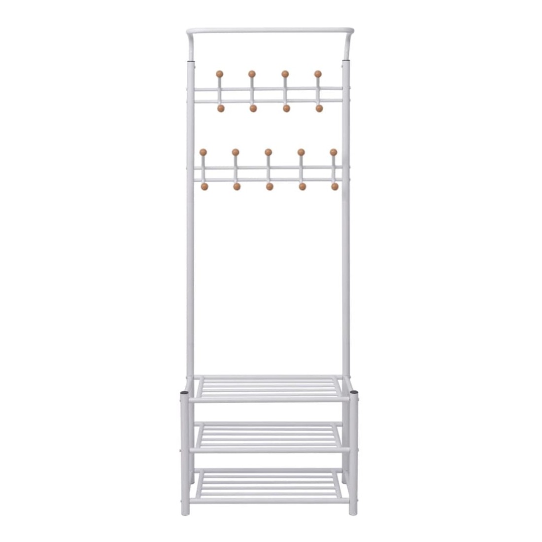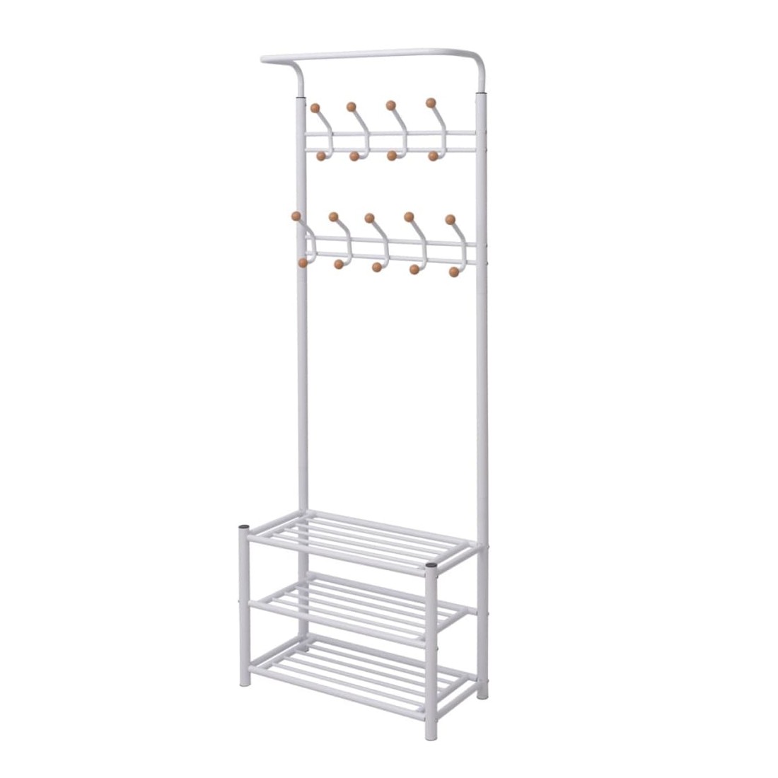 Ce porte-manteau offrira une solution de rangement rapide, pratique et portable pour accrocher vos manteaux, écharpes, chapeaux, etc. Les étagères inférieures robustes peuvent être utilisées pour ranger vos chaussures ou d'autres accessoires de façon ordonnée. Avec un design simple mais élégant, le porte-manteau s'accordera avec n'importe quel décor intérieur. L'assemblage est facile.