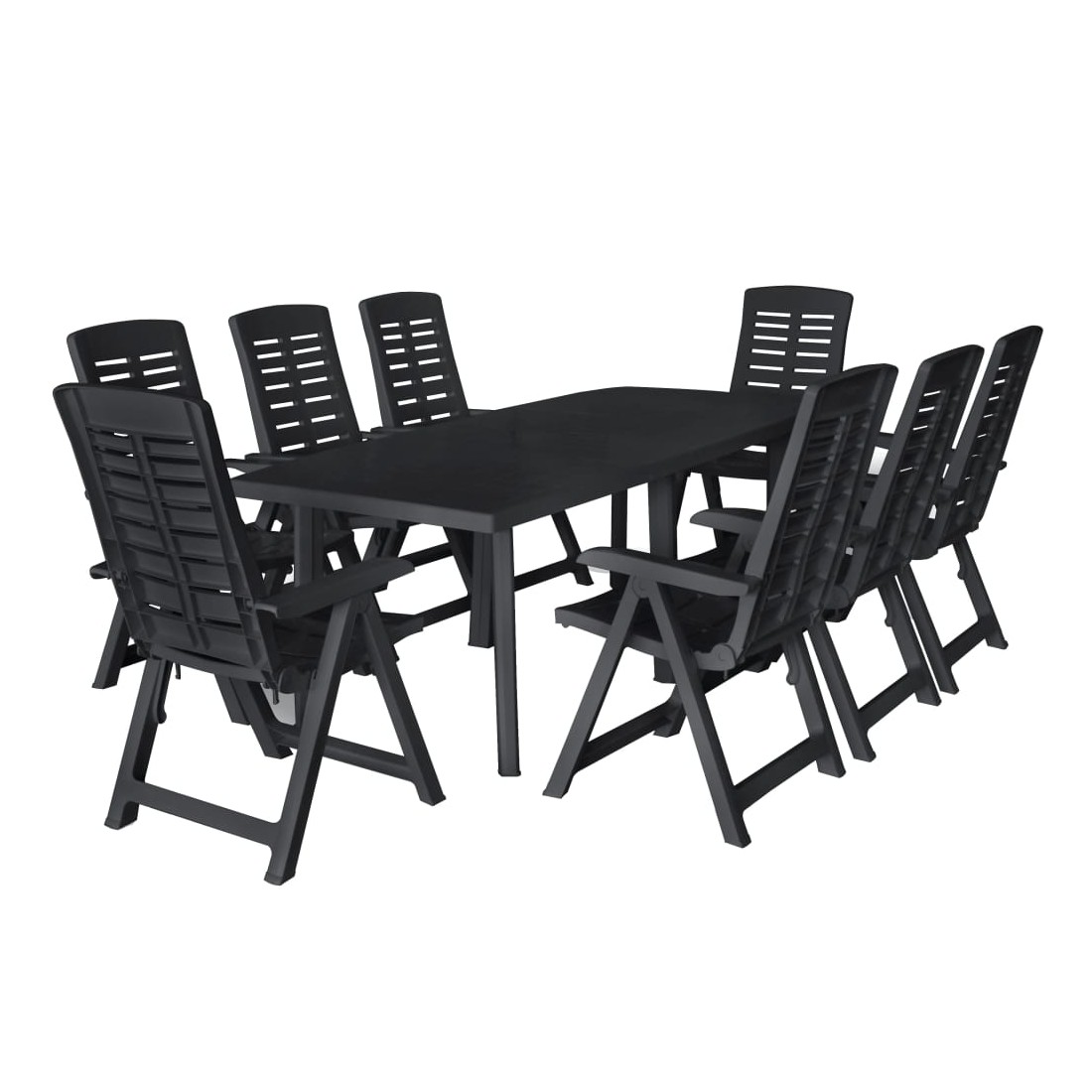 Notre ensemble de salle à manger d'extérieur sera un excellent choix pour un repas en plein air dans le jardin, sur la terrasse ou au camping. L'ensemble de salle à manger de jardin est fait de plastique durable, ce qui rend la table et les chaises résistantes aux intempéries et faciles à nettoyer. Cet ensemble de salle à manger en plastique est également léger et facile à déplacer. La table de jardin a un trou pour parasol afin que vous puissiez l'utiliser avec un parasol et rester au frais à l'ombre. Les dossiers des chaises ont 4 réglages d'inclinaison, de sorte que vous puissiez toujours trouver la position la plus confortable. Les chaises peuvent être pliées pour économiser de l'espace lorsqu'elles ne sont pas utilisées. La livraison comprend 1 table et 8 chaises pliables.