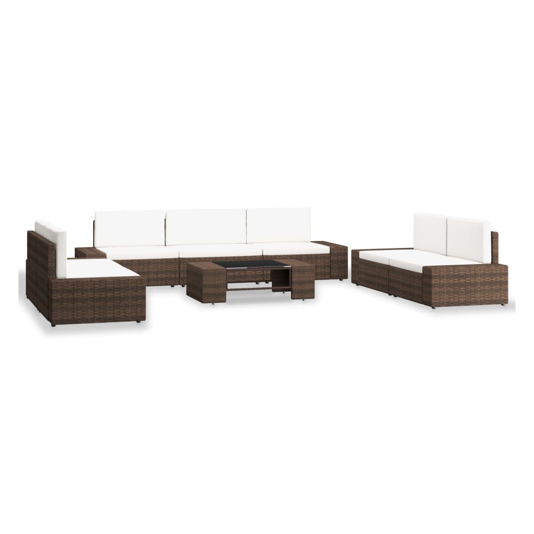 Ce salon de jardin en résine tressée est une combinaison parfaite de style et de fonctionnalité. Avec cela dans votre jardin, vous pouvez passer du temps relaxant et apaisant avec votre famille et vos amis. Grâce à la résine tressée résistante aux intempéries, le siège est facile à nettoyer, résistant à l'usure et adapté à un usage quotidien. Le canapé est doté d'un cadre en acier enduit de poudre robuste, qui est très durable. Les coussins d'assise et de dossier amovibles sont bien rembourrés, afin d'offrir un grand confort d'assise. Une table basse au design sobre peut contenir vos livres, magazines et du thé pour un moment apaisant et relaxant. De plus, grâce à sa conception modulaire, toutes les pièces peuvent être arrangées et personnalisées selon vos besoins. Cet ensemble de sièges sera sûrement le point de mire de votre jardin ou patio. Remarque : nous vous recommandons de couvrir l'ensemble pendant la pluie, la neige et le gel.