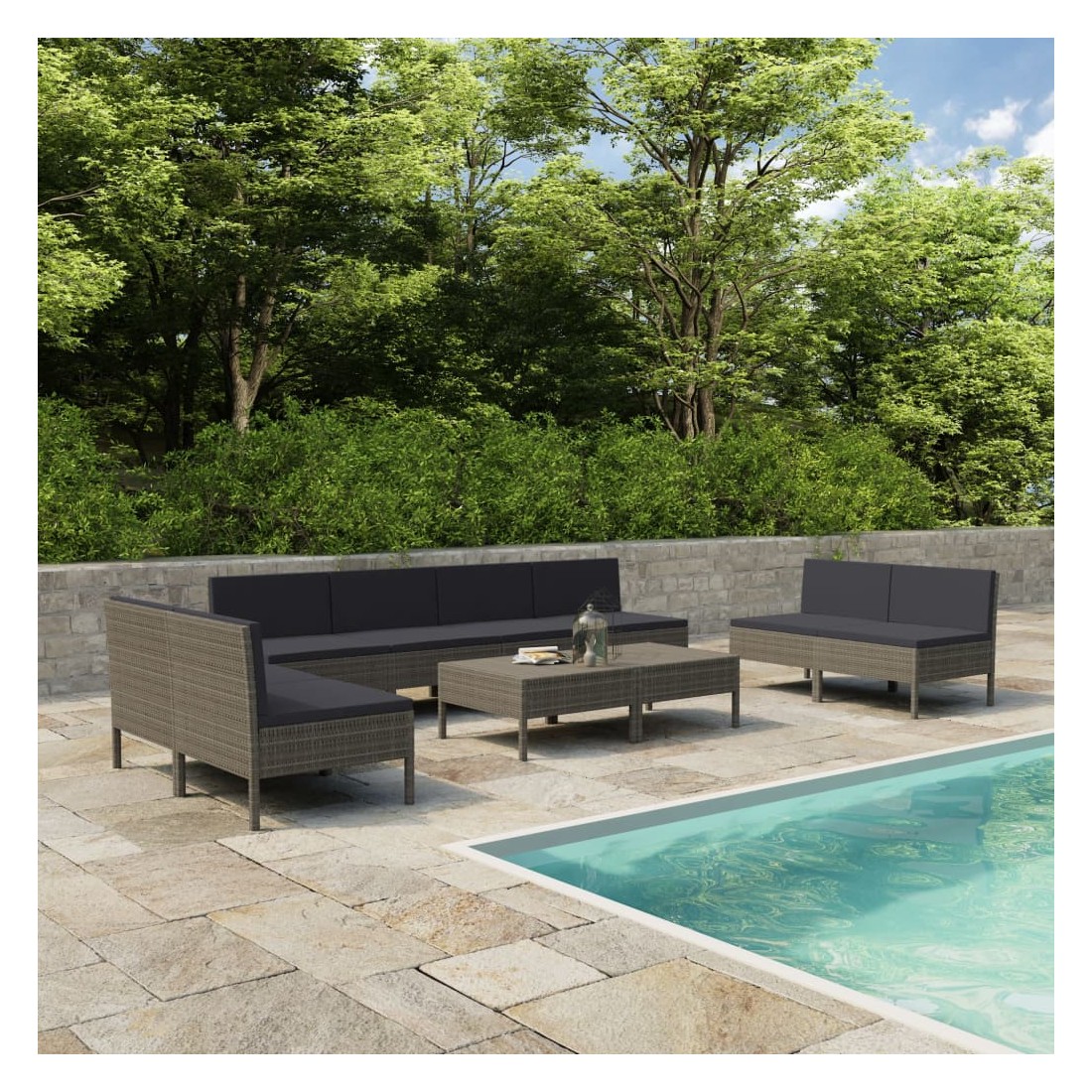 Créez un espace de détente attrayant et relaxant dont vous avez toujours rêvé avec ce salon de jardin. Vous pouvez profiter d’un après-midi ensoleillé ou d'une soirée d'été relaxante avec votre famille et vos amis grâce à cet ensemble de meubles de jardin ! L'ensemble est livré avec 10 pièces afin que vous puissiez choisir différentes dispositions et combinaisons selon vos préférences. Construit à partir de résine tressée durable sur un cadre en acier enduit de poudre, cet ensemble est durable, robuste et résistant aux intempéries. Grâce à la résine tressée toutes saisons, le salon de jardin est facile à nettoyer, résistant à l'usure et adapté à un usage quotidien. Les coussins épaississement rembourrés et les sièges modernes extra profonds vous feront revenir pour plonger dans la détente. La table basse est idéale pour garder la nourriture et les boissons à portée de main. De plus, grâce à sa conception légère et modulaire, vous pouvez déplacer cet ensemble de salon de jardin dans votre maison avec une grande facilité. Remarque : nous vous recommandons de couvrir l'ensemble pendant la pluie, la neige et le gel.