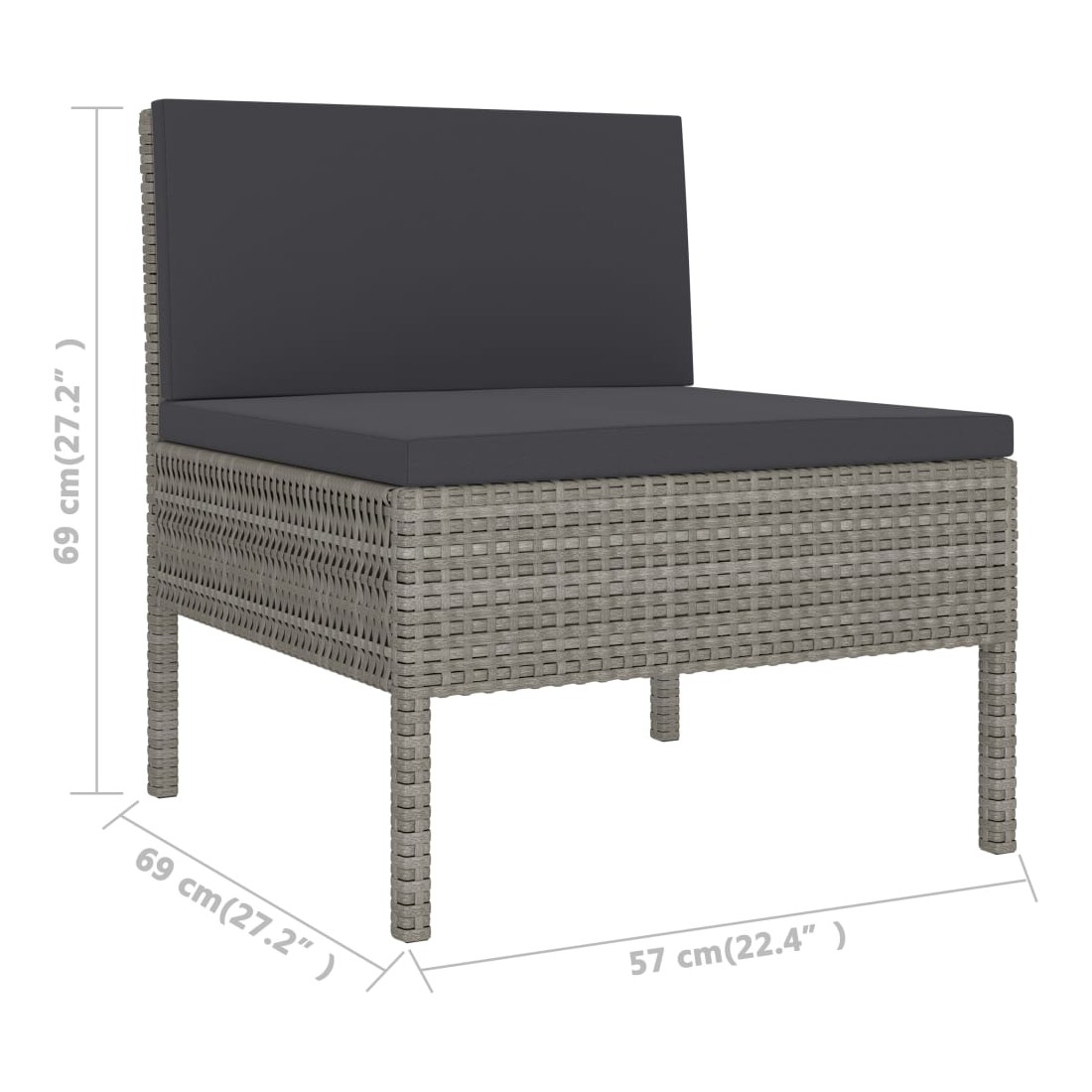 - Dimensions du canapé de milieu : 57 x 69 x 69 cm cm (l x P x H)