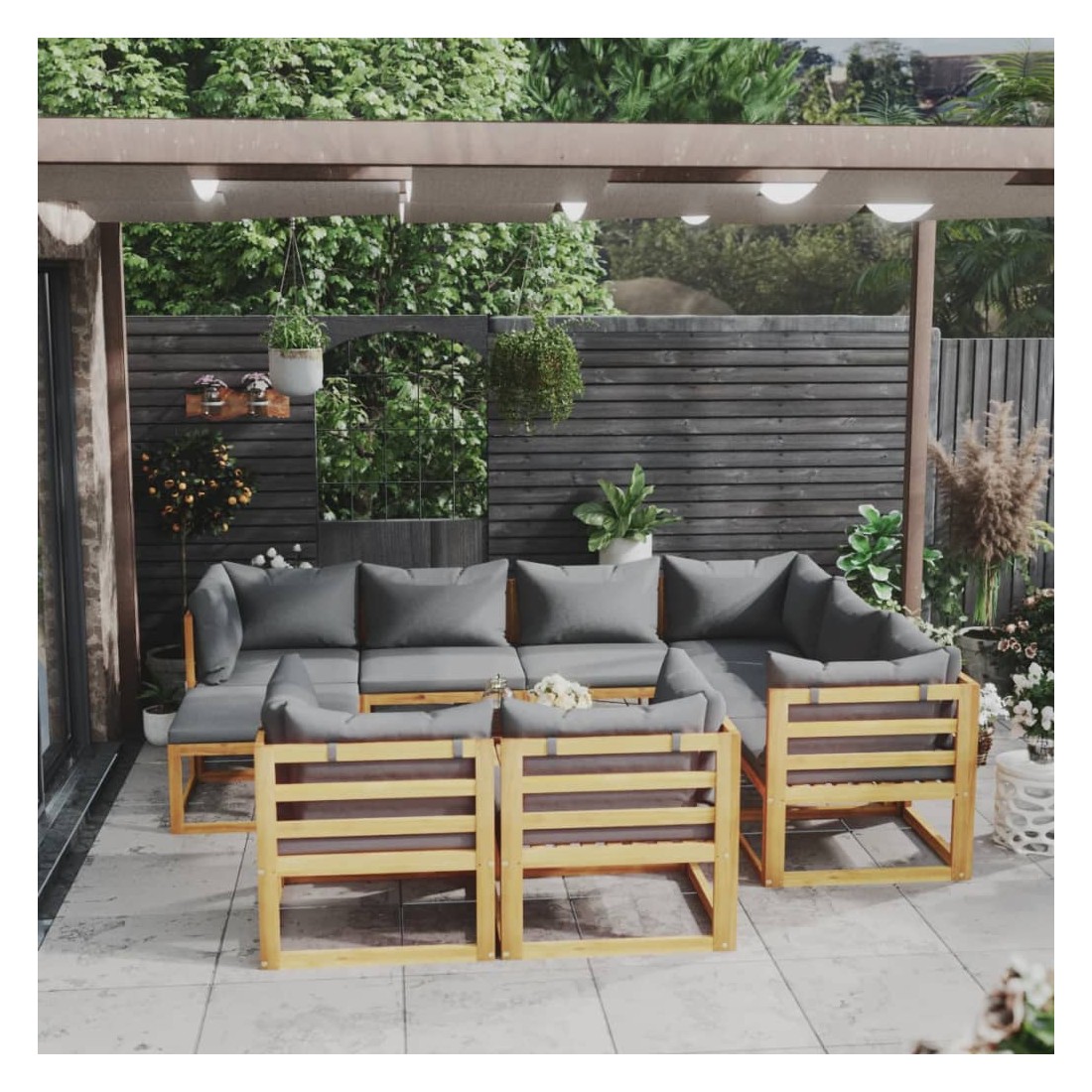 Ce mobilier de jardin en bois est une combinaison parfaite de style et de fonctionnalité. Avec cela dans votre jardin, vous pouvez passer du temps relaxant et apaisant avec votre famille et vos amis. Doté d'un cadre en bois d'acacia massif, l'ensemble de canapé est solide, robuste et durable; et sa finition à l'huile rend l'ensemble de canapé adapté à une utilisation en extérieur. Les coussins d'assise et de dossier amovibles sont épaississement rembourrés, afin d'offrir un grand confort d'assise. Une table basse au design à lattes unique est également incluse. De plus, grâce à sa conception modulaire, toutes les pièces peuvent être arrangées et personnalisées selon vos besoins. Cet ensemble de sièges sera sûrement le point de mire de votre jardin ou patio.