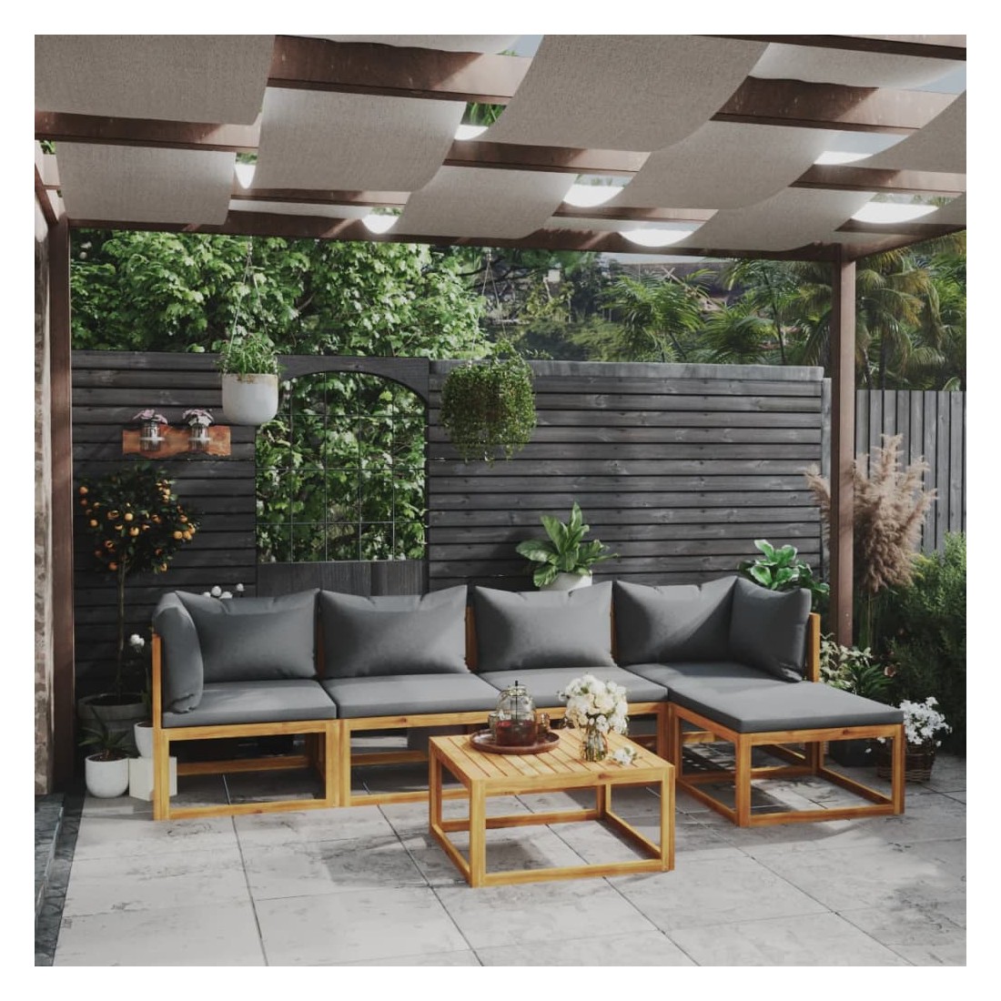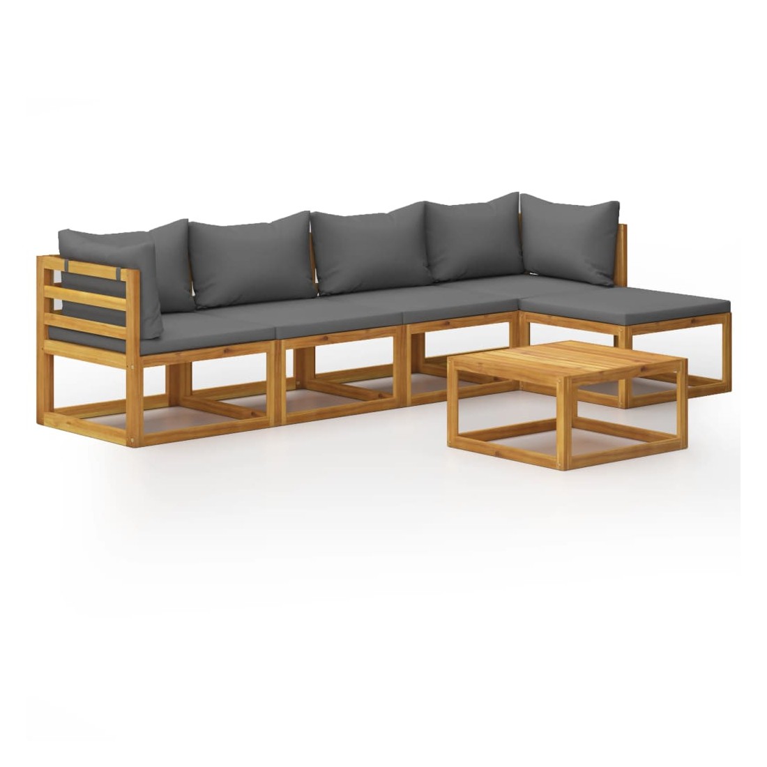 Salon de jardin 6 pcs avec coussin Bois d'acacia solide